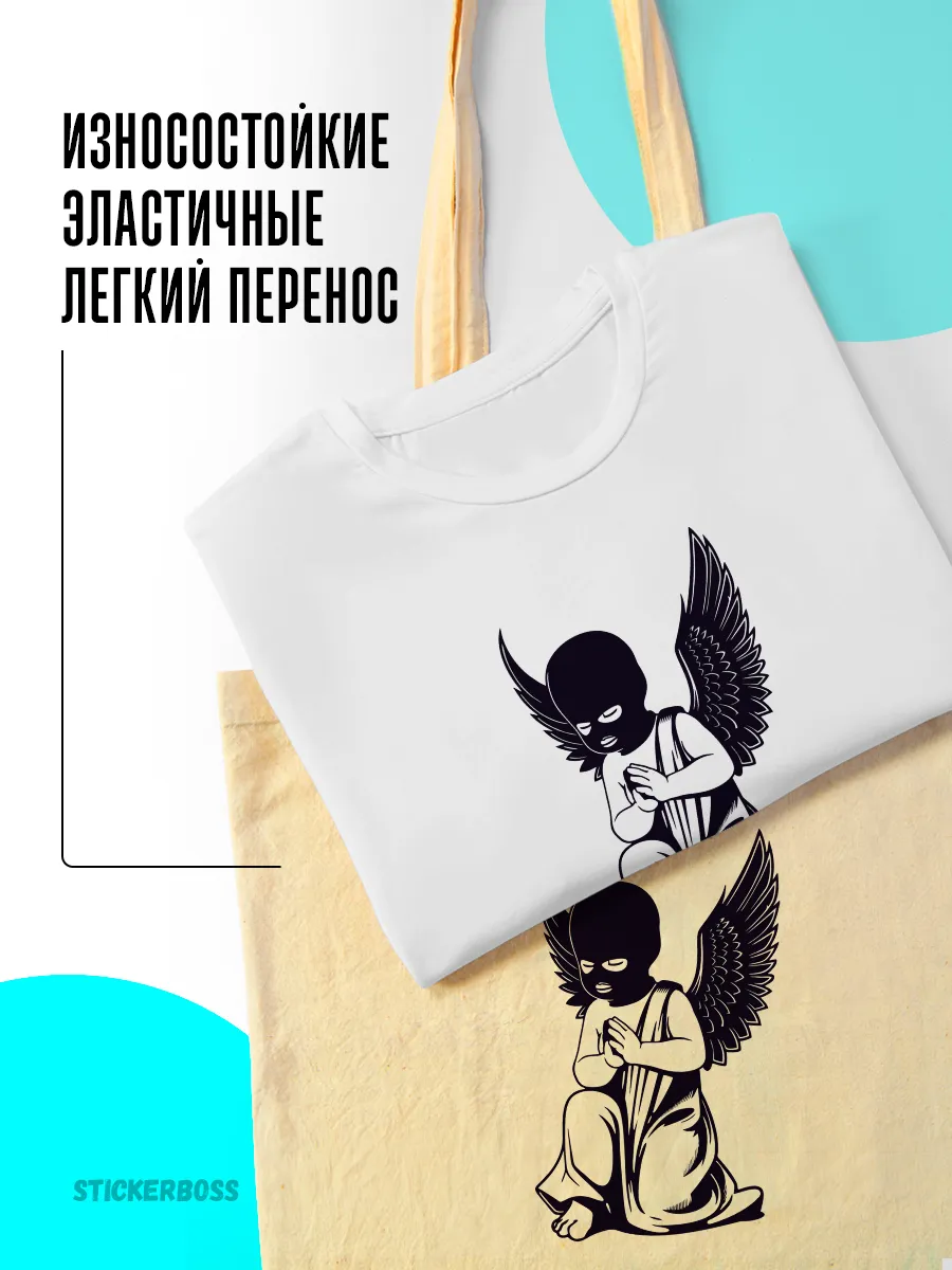 Подходит для одежды: футболки, куртки, кепки, шопперы и другие текстильные изделия. Наклейка наносится утюгом и закрепляется на ткани без применения сложной техники. Дизайн Ангел 413 добавляет индивидуальности вещам.