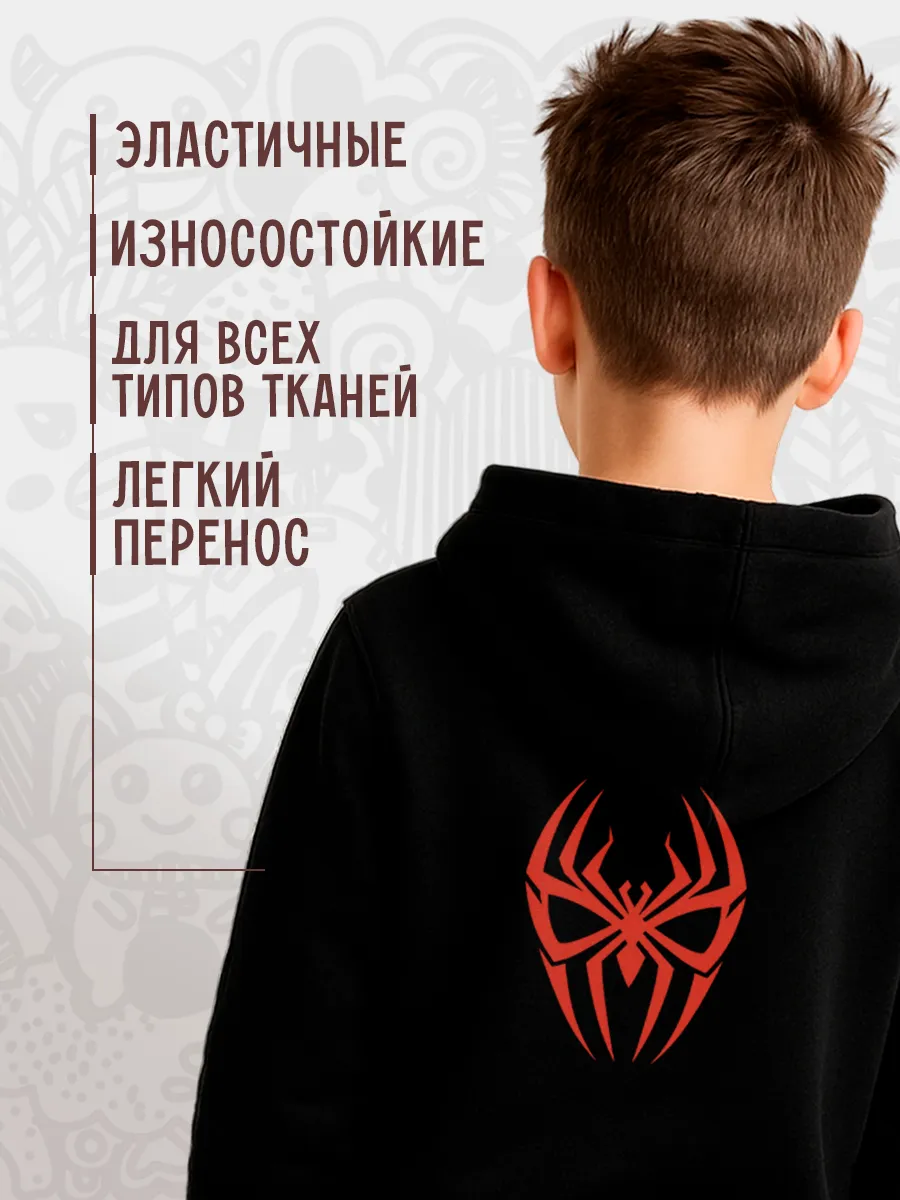 Термонаклейка термотрансфер на одежду Человек паук Spiderman 130 — современный способ обновить образ без пошива. Наклейка наносится утюгом на ткань, подложка обеспечивает надежное сцепление и долговечность нанесения. В ассортименте дизайны, включая персонажей, надписи и эмблемы, подходящие для взрослых и детей.