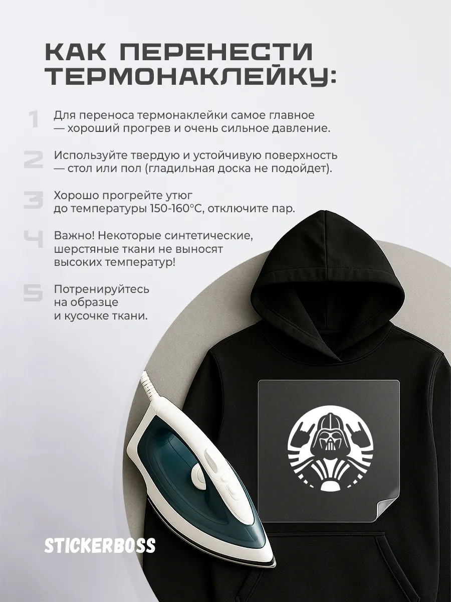 Эта термонаклейка на одежду предлагает простой способ персонализации гардероба. Наклейка наносится утюгом, образуя прочное сцепление с тканью и сохраняючи яркость рисунка на протяжении длительного времени. Дизайн Дарт Вейдер привлекает внимание и добавляет индивидуальности вещам.