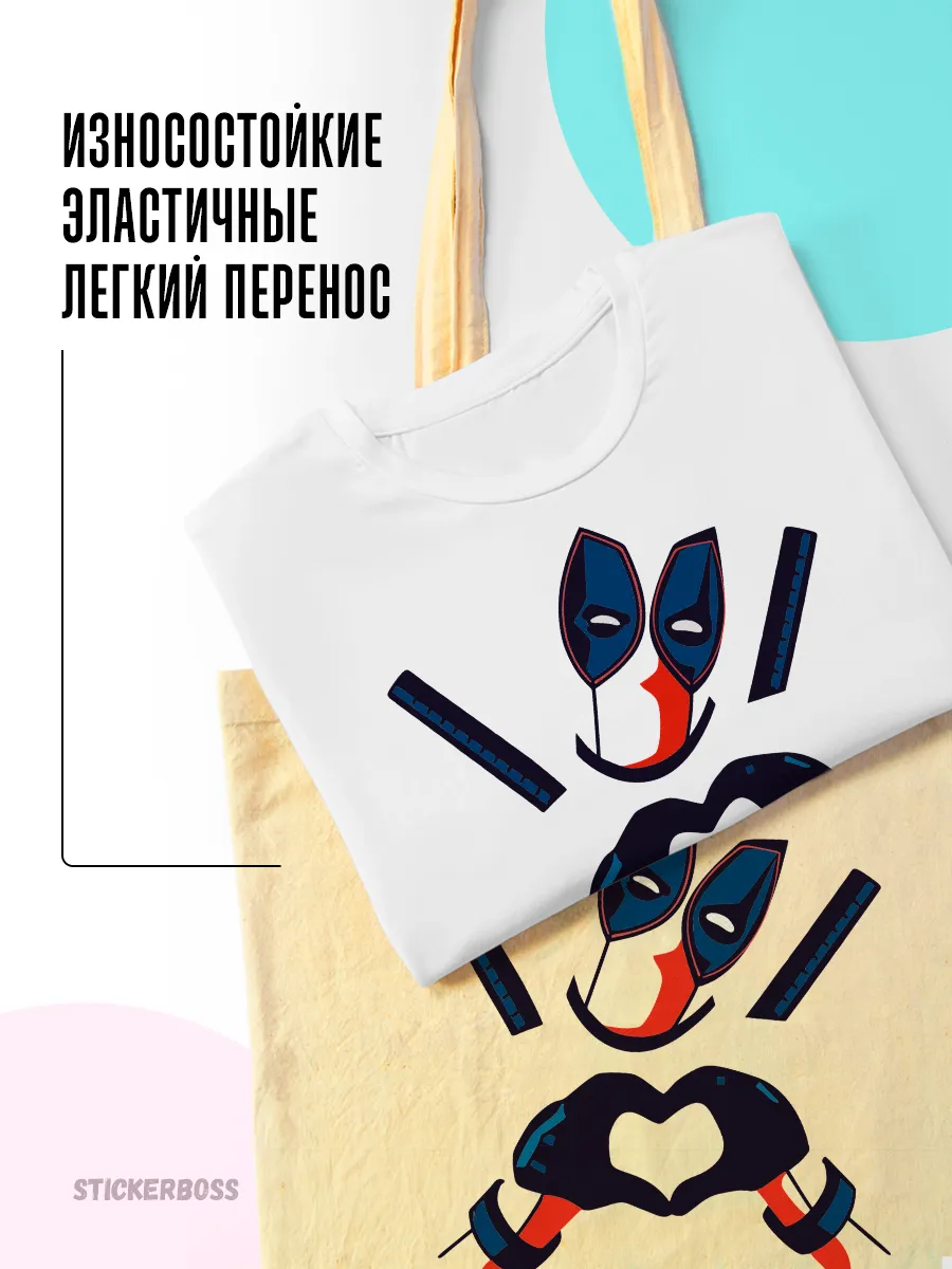 Термонаклейка термотрансфер на одежду с изображением Дэдпул 802 в красном исполнении позволяет быстро обновить внешний вид ткани. Рисунок наносится утюгом и сохраняет яркость на хлопке и синтетических тканях.