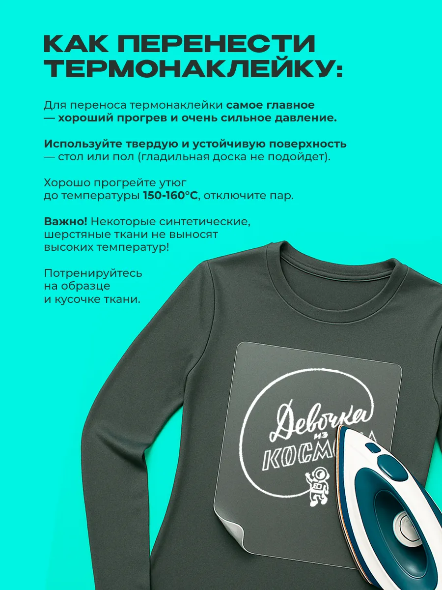 Наклейку можно наносить на ткань одежды. Разместите дизайн на поверхности, затем прогладьте утюгом до активации клеевого слоя. После нанесения дайте изделию остыть для полного застывания клея.