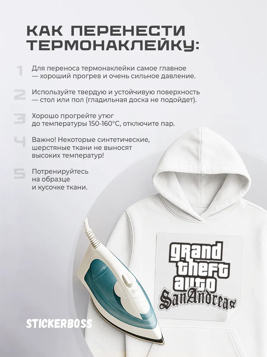 Термонаклейка Grand theft auto 102 — удобное декоративное решение для одежды, позволяющее быстро обновить образ без раскроя и швейной обработки. Наклейка рассчитана на ткань, обеспечивает долговечность и стойкость к износу, сохраняя яркость рисунка после стирок. Набор произведен в России и представлен единицей комплектации: термоклейка — 1 шт.
