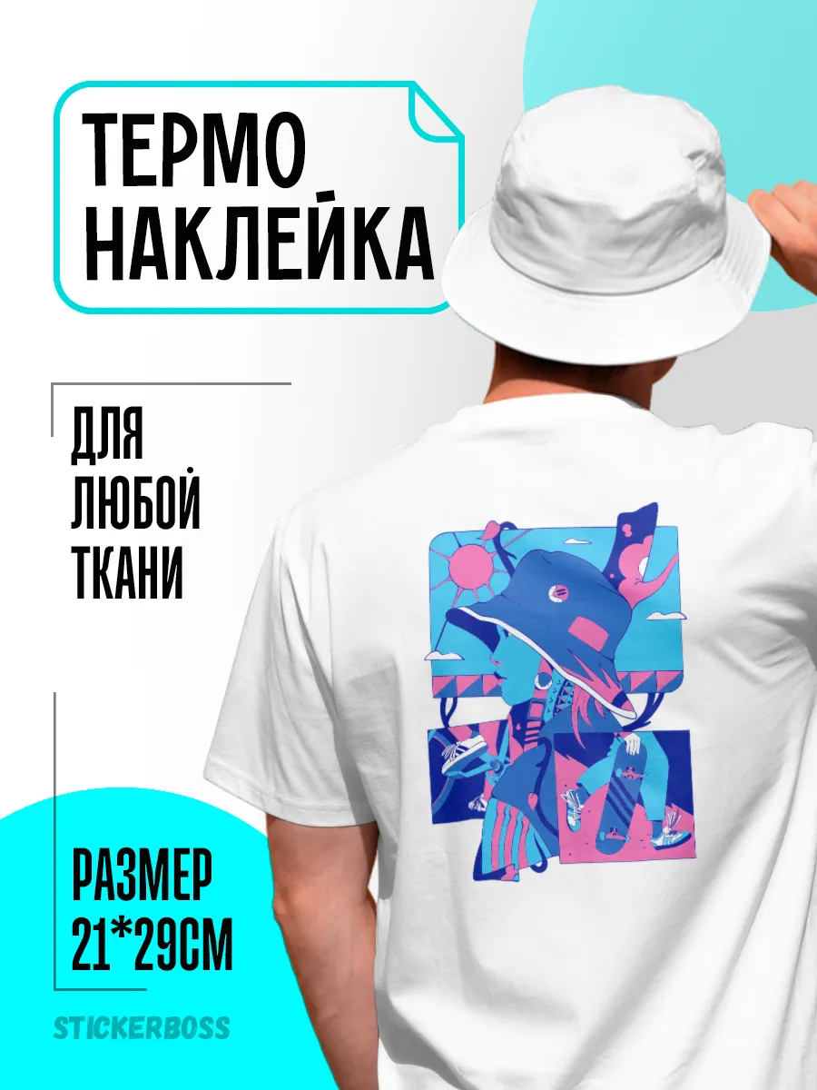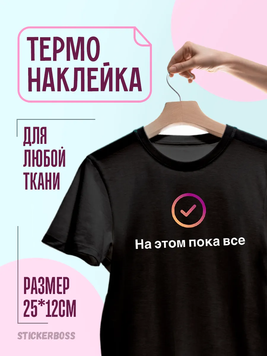Подходит для одежды, футболок, курток, кепок и шопперов. Наклейки можно разместить на любых тканях, которые выдерживают тепловой контакт и не содержат сильных агрессивных составов.