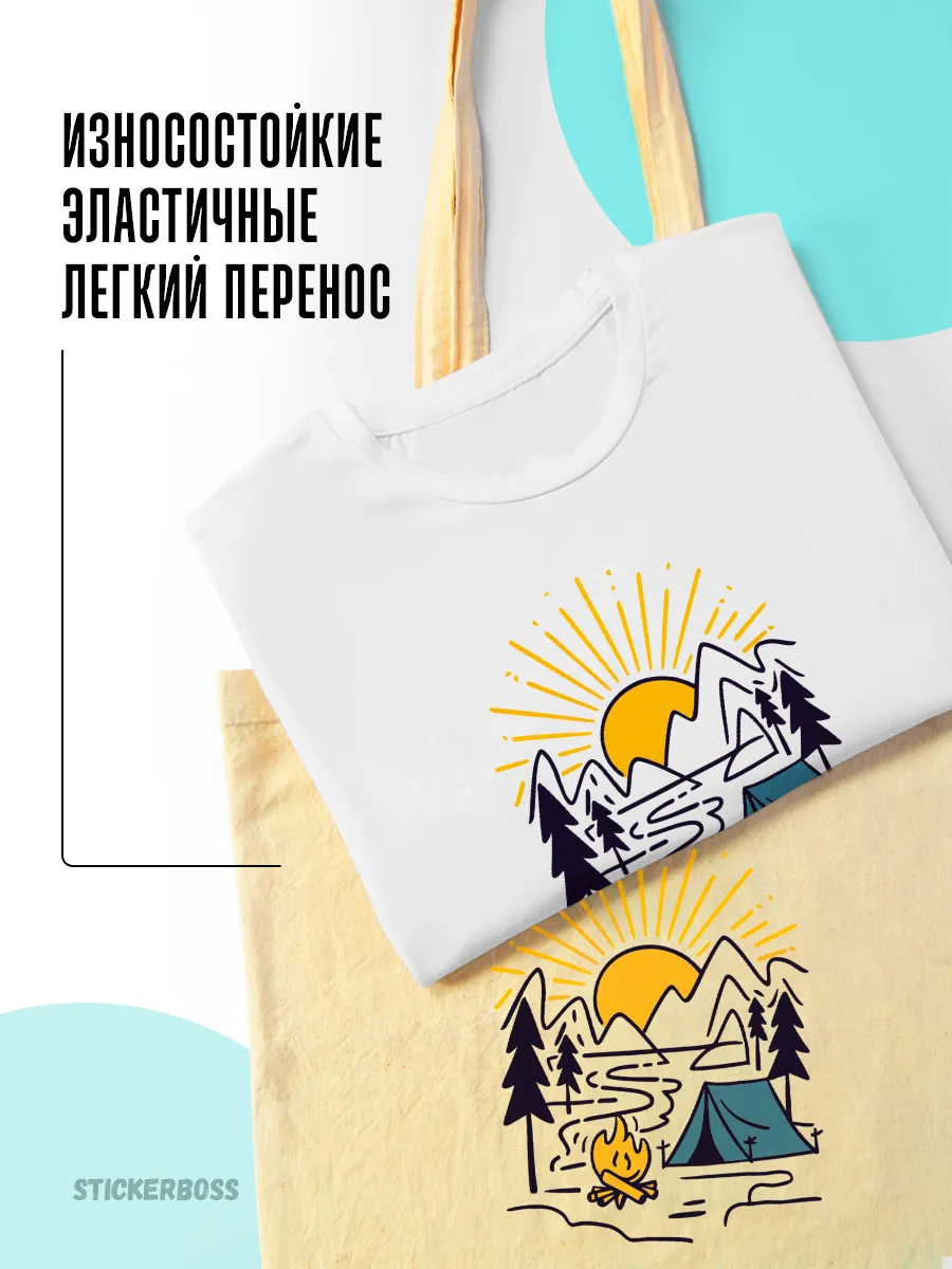 Термонаклейка термотрансфер на одежду позволяет быстро и доступно превратить обычную вещь в стильный предмет гардероба. Легкость нанесения, долговечность и возможность обновлять стиль без шитья — преимущества, которые ценят взрослые и дети. В коллекции дизайны с кемпинг-мотивами, разнообразные элементы и надписи, которые можно комбинировать под образ.