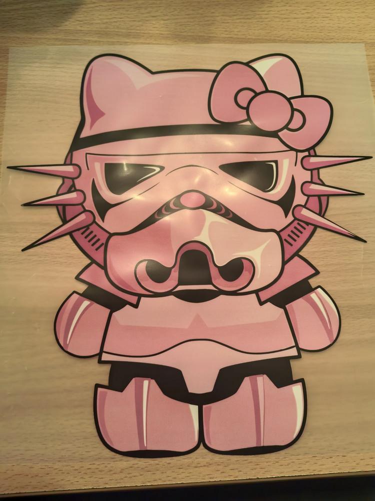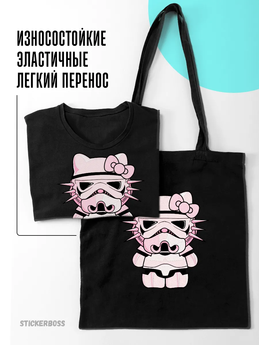 Подходит для обновления одежды и аксессуаров из ткани: футболок, курток, кепок, сумок-шопперов и других текстильных изделий. Рисунок Hello Kitty в сочетании с темой звездных войн может подходить для разных возрастных категорий.