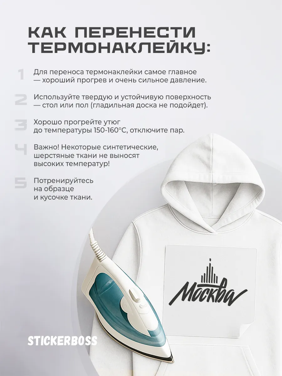 Наклейку наносят на ткань с помощью утюга, тепло активирует клеевой слой и обеспечивает надежное сцепление. Следуйте инструкциям по нанесению на этикетке для оптимального результата.