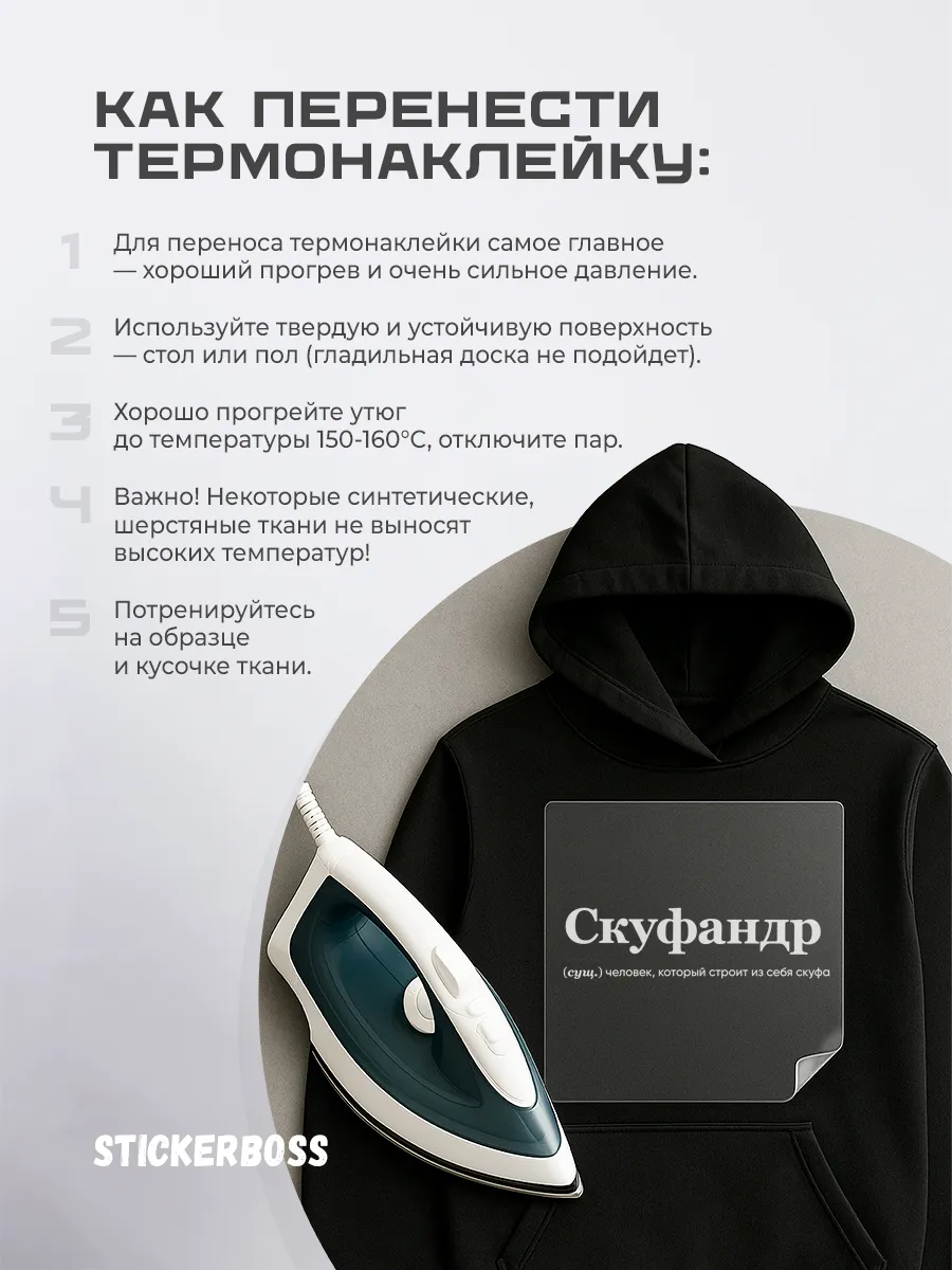 Термонаклейка термотрансфер на одежду Скуфандр 60 представляет собой компактное декоративное решение для обновления гардероба. Наносится утюгом и обеспечивает прочное сцепление с тканью, оставаясь эластичной и долговечной.