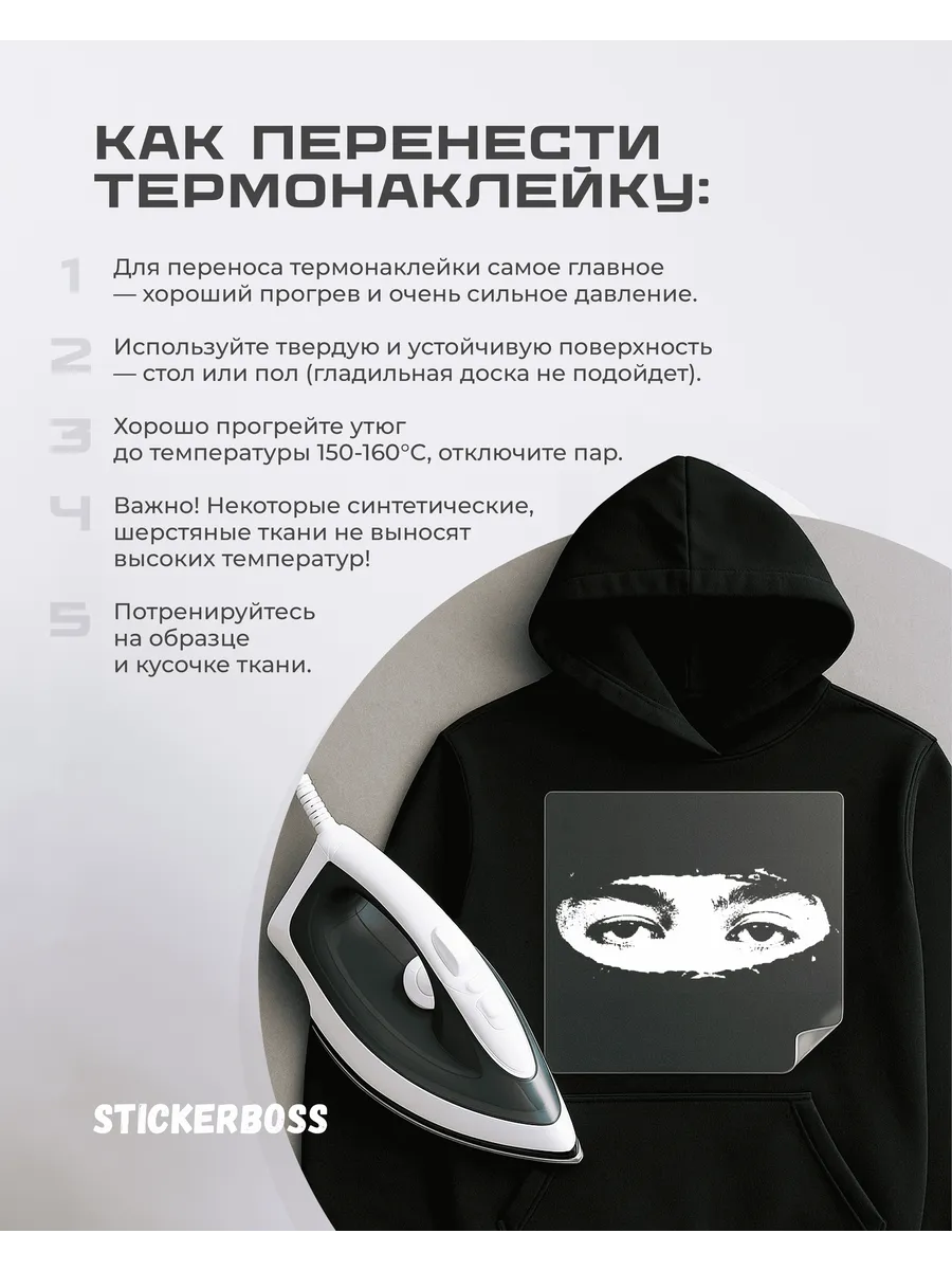 \nИнформация об уходе за наклейкой не указана. Рекомендуется соблюдать общие принципы эксплуатации термонаклеек и избегать прямого механического воздействия на поверхность.