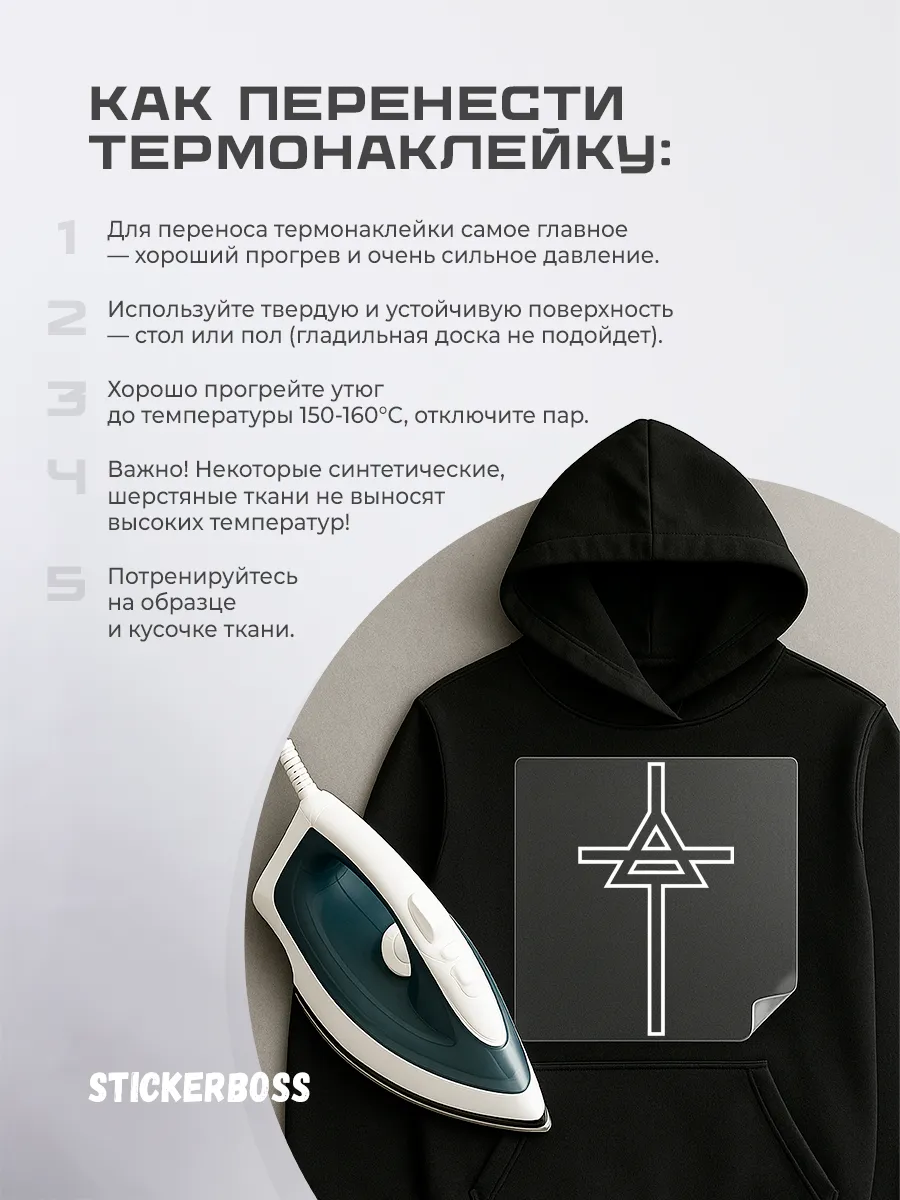 Разместите наклейку на чистой ткани в нужном месте. Для активации клея прогладьте утюгом без пара до полного сцепления. Не перегибайте ткань и не перемещайте наклейку во время проглаживания. Следуйте инструкциям на упаковке.