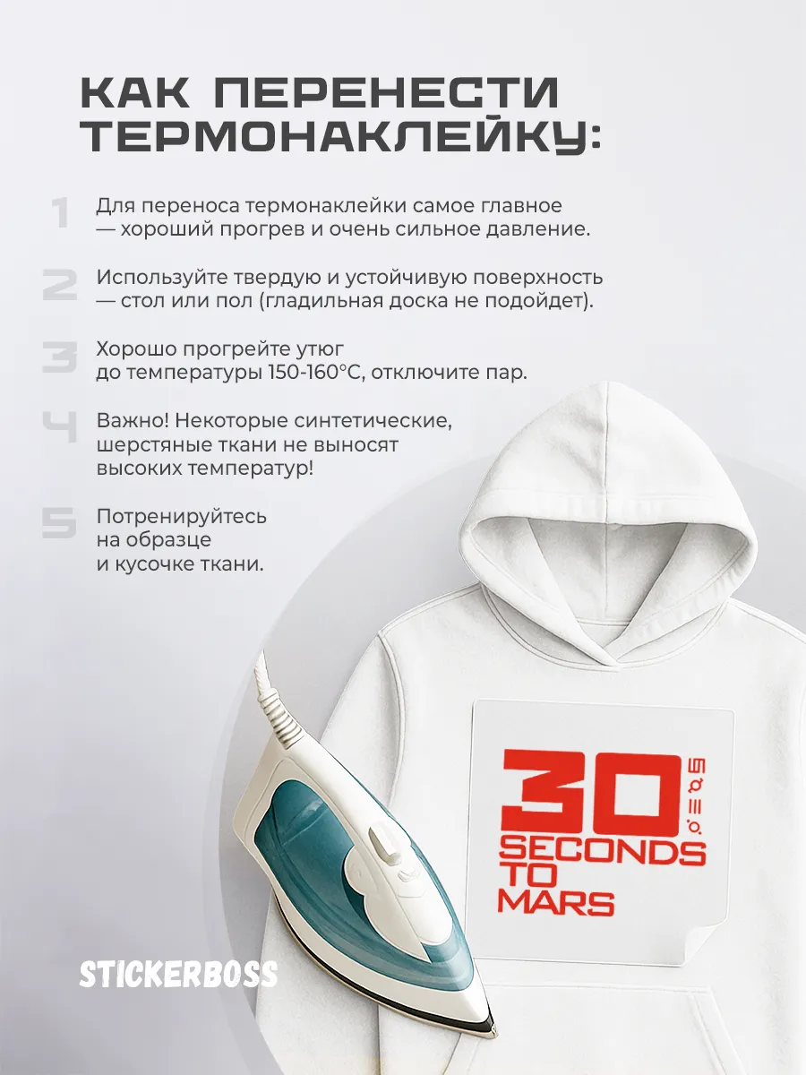 - Удобство нанесения: термотрансфер наносится утюгом, без специализированного оборудования.