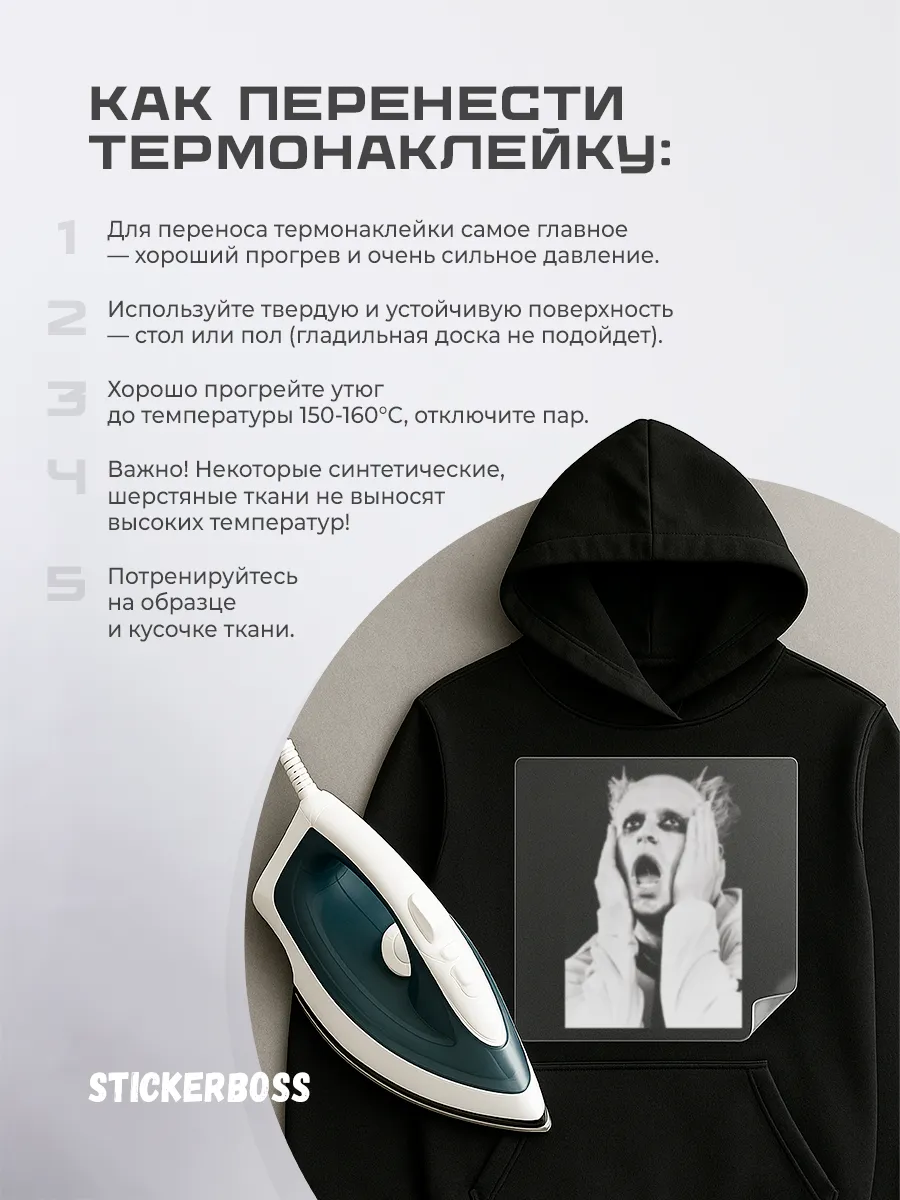 Термонаклейка термотрансфер на одежду — современный способ изменить или украсить ваш гардероб без шитья. Наносится утюгом на ткань, термоактивируемый слой клея обеспечивает надежное сцепление, а подложка препятствует перекрытию на материале. Такая наклейка отличается износостойкостью и эластичностью, не склонна к выцветанию, что делает её подходящим декоративным элементом одежды.