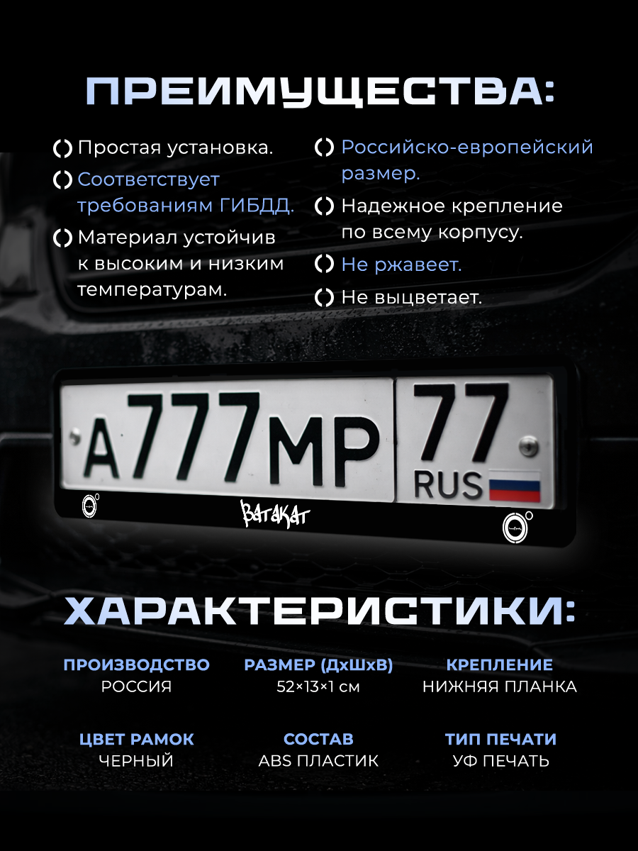 Рамка для ГОС номера автомобиля 52х13х1 см универсальная, выполнена из качественного и надежного ABS пластика. Она подойдет практически для любой марки автомобиля в том числе и для китайских. На лицевой стороне выполнена качественная печать методом УФ печати, которая устойчива к любым погодным условиям, не выгорает со временем и не выцветает.