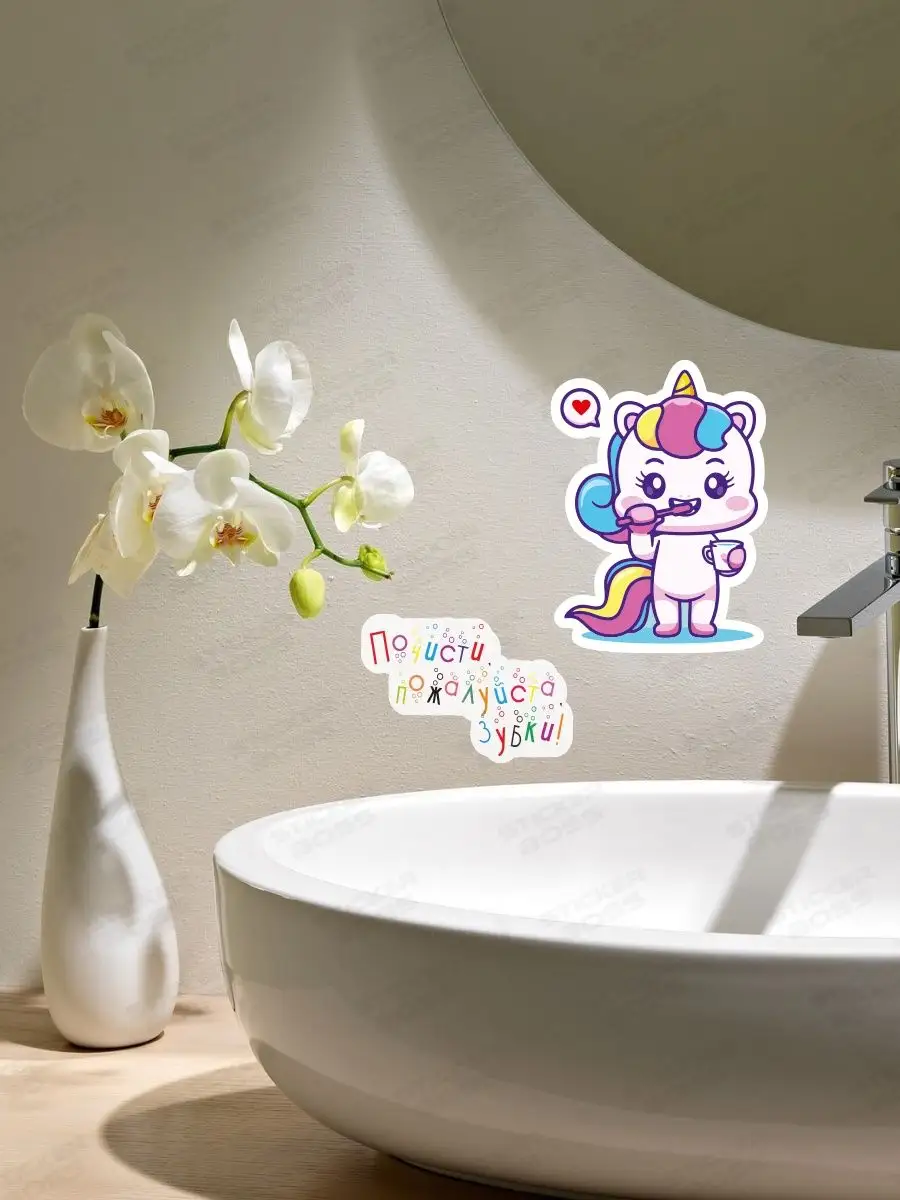 Воспитание детей, процесс не простой, но с нашими наклейками из детской коллекции может стать легче и приятнее! Представляем вашему вниманию уникальный аксессуар для дома - интерьерную наклейку с милой и важной надписью "Пожалуйста, почисти зубки"