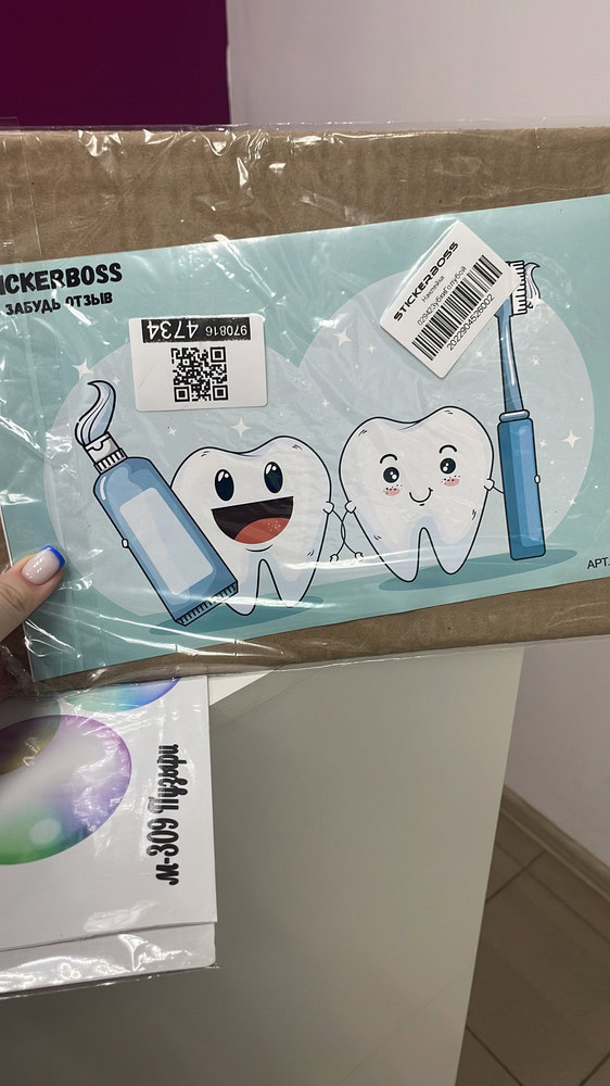 Представляем вашему вниманию очаровательную интерьерную наклейку, созданную специально для маленьких чемпионов гигиены! Этот забавный стикер изображает два улыбающихся зуба, которые дружно делятся захватывающей новостью о важности чистки зубов