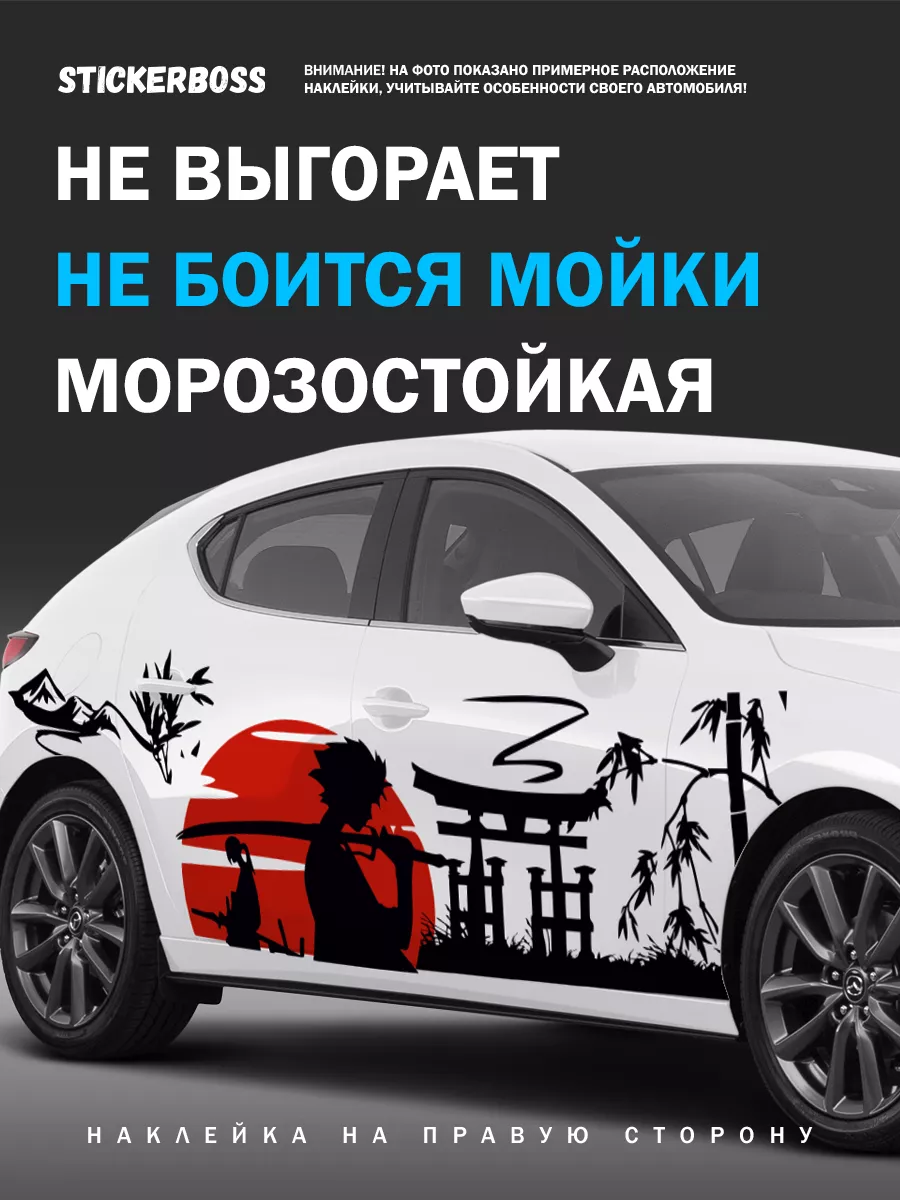 Преобразите внешний вид вашего автомобиля с эксклюзивной автонаклейкой-ливреей, создающей уникальный и выразительный образ. На этой стильной наклейке изображен восхитительный силуэт самурая на фоне восходящего солнца, величественных гор, изящного бамбука и традиционных ворот тории. Размер композиции составляет 300х60 см, что позволяет идеально покрыть двери и крылья машины, придавая ей изысканный и гармоничный вид. Стикер выполнен в двух классических цветах — черном и красном, которые создают контрастный и притягательный эффект, подчеркивая динамичность и элегантность вашего авто. Легкая в установке и долговечная, эта авто наклейка станет отличным выбором для тех, кто желает выделиться на дороге и подчеркнуть свою индивидуальность. Создай свой индивидуальный стиль с автоаксессуарами от Stickerboss!