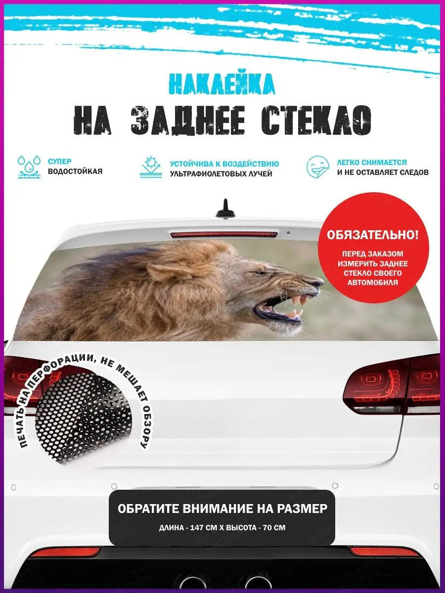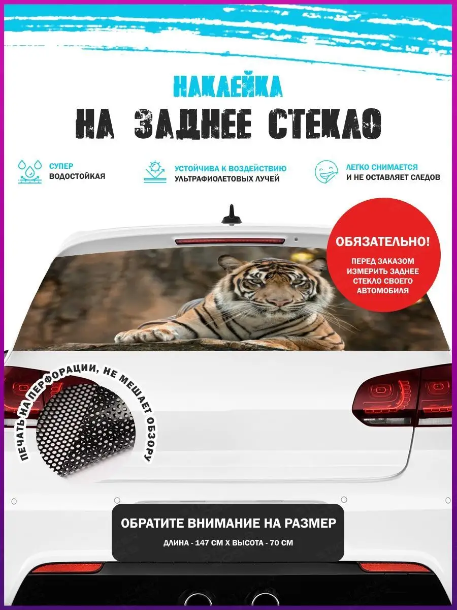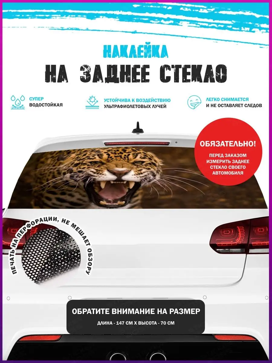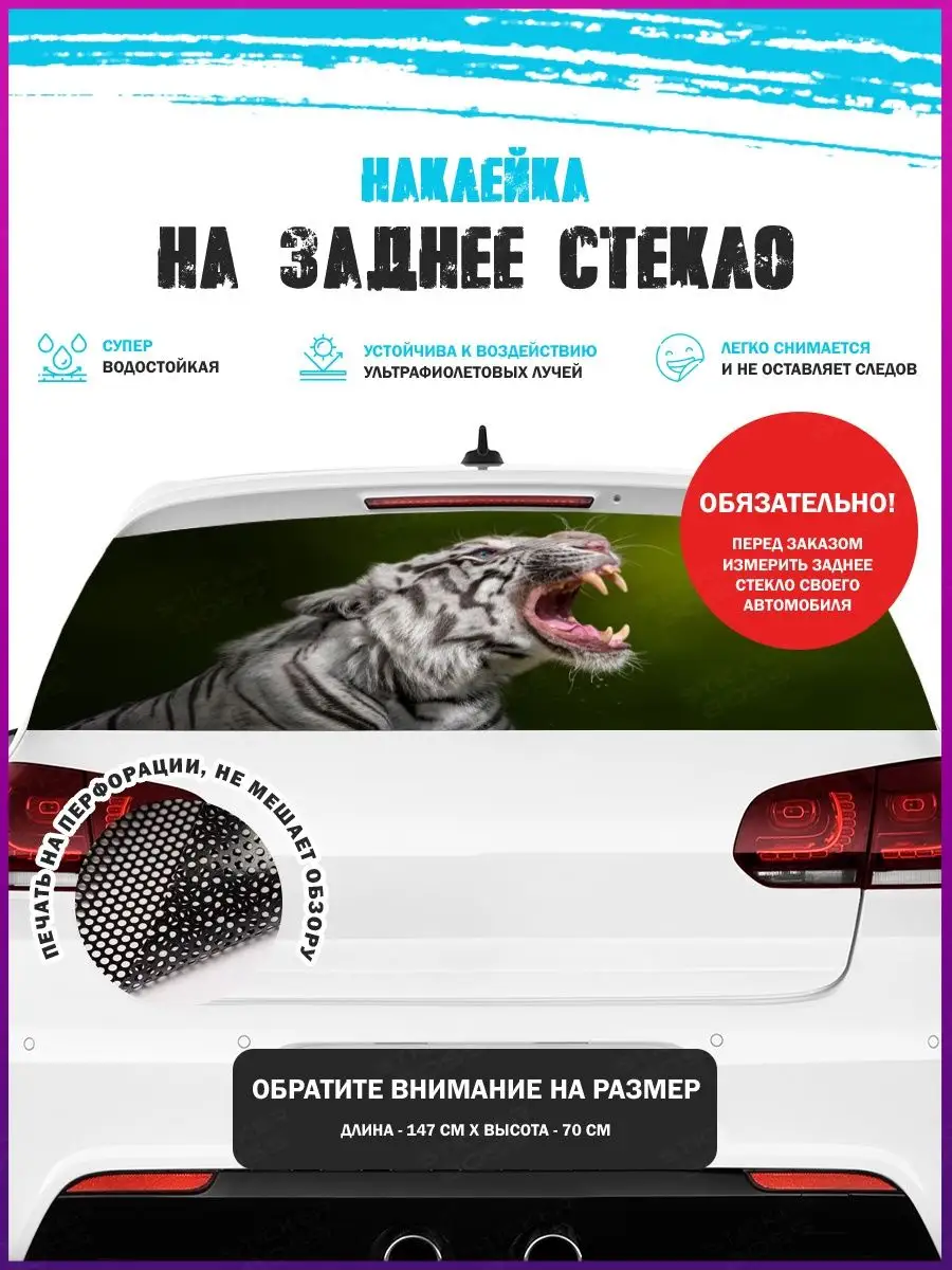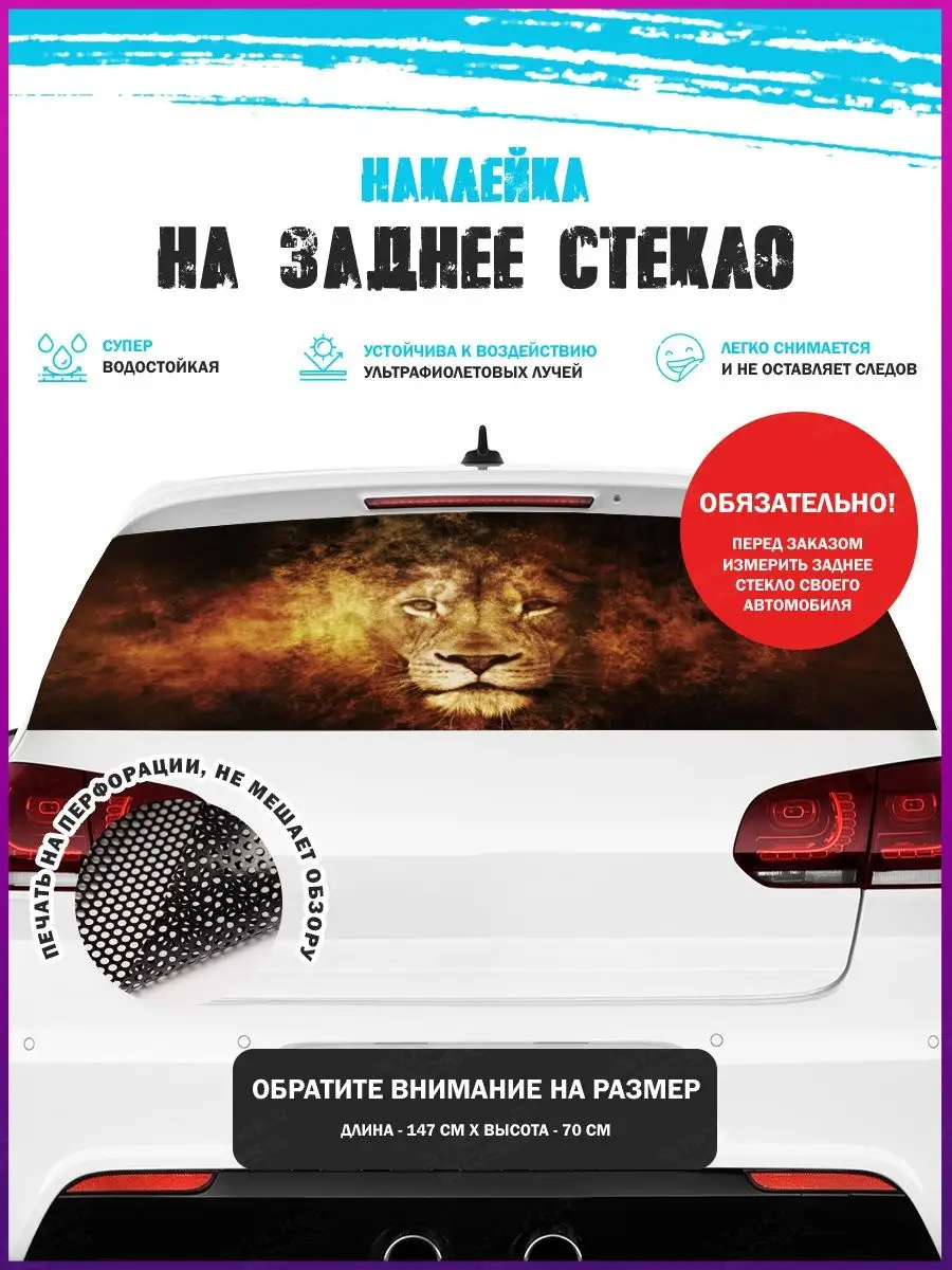 Предлагаем вашему вниманию большую декоративную автонаклейку - сетку на заднее стекло вашего авто. Размер стикера универсальный - 150х70 см, подойдет на стекла большинства популярных авто, будь то седан, хэтчбек или универсал. При необходимости можно подрезать лист под нужный размер. При изготовлении этих автонаклеек мы используем высококачественную самоклеящуюся виниловую перфорированную пленку ПВХ, которая обеспечивает надежное приклеивание к поверхности, устойчива к любому виду моек и агрессивным погодным условиям, не боится пыли и влаги, не выгорает на солнце. При желании, легко снимается, не оставляя следов. В наличии множество различных вариантов на любой вкус – в коллекции есть принты с надписями, героями известных кинофильмов, мультфильмов, компьютерных игр, динамичные изображения львов, тигров, волков, медведей, леопардов, собак, лошадей, и прочих животных, принты в стиле аниме, флаги, логотипы футбольнх клубов, горы, города и многое другое. Наклейка имеет перфорацию по всей площади, что позволяет с одной стороны украсить автомобиль и добавить ему стиля, с другой стороны скрыть от любопытных глаз ваших пассажиров, заменяя собой скучную классическую тонировку. Товар упаковывается в специальную защитную тубу, что позволяет обеспечить его сохранность во время доставки и порадовать наших покупателей яркими красками и высоким качеством наших стикеров. Они так же станут отличным подарком вашим близким на новый год, день рождения, женщинам на 8 марта и мужчинам на 23 февраля. Сделайте повседневную езду на машине ярче, вместе с продукцией бренда Stickerboss!