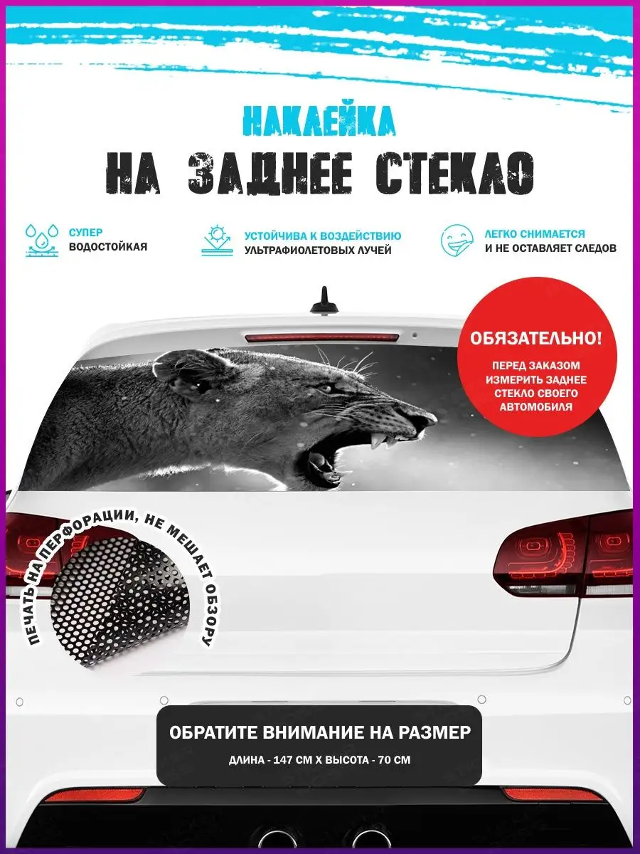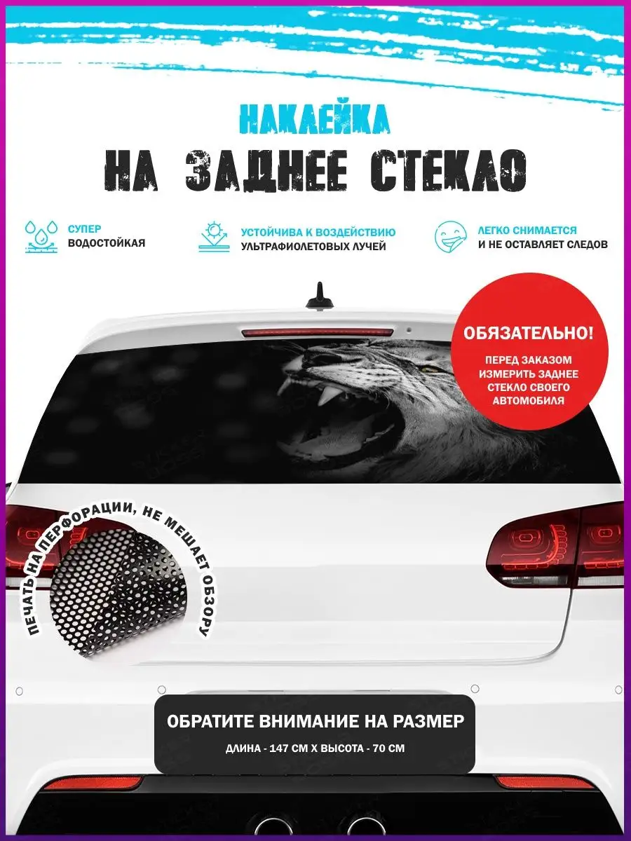 Предлагаем вашему вниманию большую декоративную автонаклейку - сетку на заднее стекло вашего авто. Размер стикера универсальный - 150х70 см, подойдет на стекла большинства популярных авто, будь то седан, хэтчбек или универсал. При необходимости можно подрезать лист под нужный размер. При изготовлении этих автонаклеек мы используем высококачественную самоклеящуюся виниловую перфорированную пленку ПВХ, которая обеспечивает надежное приклеивание к поверхности, устойчива к любому виду моек и агрессивным погодным условиям, не боится пыли и влаги, не выгорает на солнце. При желании, легко снимается, не оставляя следов. В наличии множество различных вариантов на любой вкус – в коллекции есть принты с надписями, героями известных кинофильмов, мультфильмов, компьютерных игр, динамичные изображения львов, тигров, волков, медведей, леопардов, собак, лошадей, и прочих животных, принты в стиле аниме, флаги, логотипы футбольнх клубов, горы, города и многое другое. Наклейка имеет перфорацию по всей площади, что позволяет с одной стороны украсить автомобиль и добавить ему стиля, с другой стороны скрыть от любопытных глаз ваших пассажиров, заменяя собой скучную классическую тонировку. Товар упаковывается в специальную защитную тубу, что позволяет обеспечить его сохранность во время доставки и порадовать наших покупателей яркими красками и высоким качеством наших стикеров. Они так же станут отличным подарком вашим близким на новый год, день рождения, женщинам на 8 марта и мужчинам на 23 февраля. Сделайте повседневную езду на машине ярче, вместе с продукцией бренда Stickerboss!