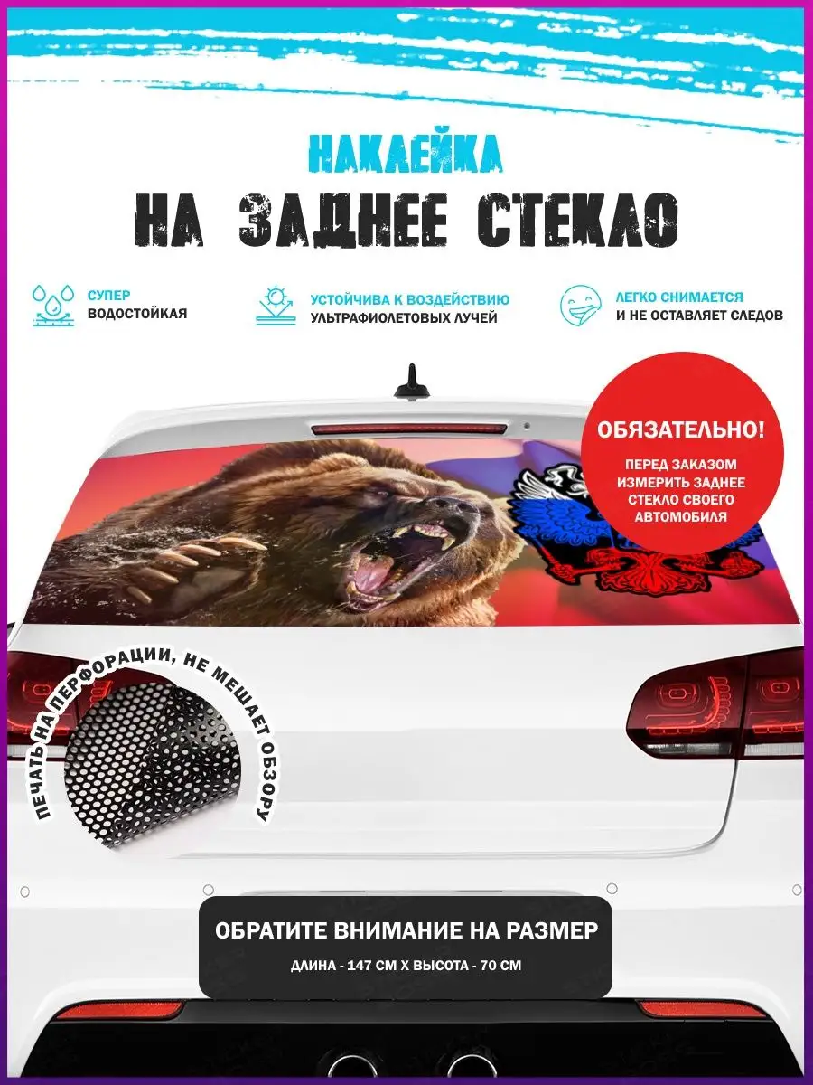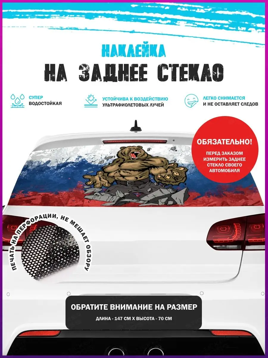 Предлагаем вашему вниманию большую декоративную автонаклейку - сетку на заднее стекло вашего авто. Размер стикера универсальный - 150х70 см, подойдет на стекла большинства популярных авто, будь то седан, хэтчбек или универсал. При необходимости можно подрезать лист под нужный размер. При изготовлении этих автонаклеек мы используем высококачественную самоклеящуюся виниловую перфорированную пленку ПВХ, которая обеспечивает надежное приклеивание к поверхности, устойчива к любому виду моек и агрессивным погодным условиям, не боится пыли и влаги, не выгорает на солнце. При желании, легко снимается, не оставляя следов. В наличии множество различных вариантов на любой вкус – в коллекции есть принты с надписями, героями известных кинофильмов, мультфильмов, компьютерных игр, динамичные изображения львов, тигров, волков, медведей, леопардов, собак, лошадей, и прочих животных, принты в стиле аниме, флаги, логотипы футбольнх клубов, горы, города и многое другое. Наклейка имеет перфорацию по всей площади, что позволяет с одной стороны украсить автомобиль и добавить ему стиля, с другой стороны скрыть от любопытных глаз ваших пассажиров, заменяя собой скучную классическую тонировку. Товар упаковывается в специальную защитную тубу, что позволяет обеспечить его сохранность во время доставки и порадовать наших покупателей яркими красками и высоким качеством наших стикеров. Они так же станут отличным подарком вашим близким на новый год, день рождения, женщинам на 8 марта и мужчинам на 23 февраля. Сделайте повседневную езду на машине ярче, вместе с продукцией бренда Stickerboss!