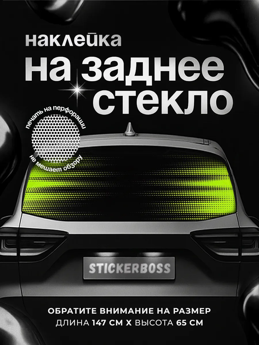 Предлагаем вашему вниманию большую декоративную автонаклейку - сетку на заднее стекло вашего авто. Размер стикера универсальный - 150х70 см, подойдет на стекла большинства популярных авто, будь то седан, хэтчбек или универсал. При необходимости можно подрезать лист под нужный размер. При изготовлении этих автонаклеек мы используем высококачественную самоклеящуюся виниловую перфорированную пленку ПВХ, которая обеспечивает надежное приклеивание к поверхности, устойчива к любому виду моек и агрессивным погодным условиям, не боится пыли и влаги, не выгорает на солнце. При желании, легко снимается, не оставляя следов. В наличии множество различных вариантов на любой вкус – в коллекции есть принты с надписями, героями известных кинофильмов, мультфильмов, компьютерных игр, динамичные изображения львов, тигров, волков, медведей, леопардов, собак, лошадей, и прочих животных, принты в стиле аниме, флаги, логотипы футбольнх клубов, горы, города и многое другое. Наклейка имеет перфорацию по всей площади, что позволяет с одной стороны украсить автомобиль и добавить ему стиля, с другой стороны скрыть от любопытных глаз ваших пассажиров, заменяя собой скучную классическую тонировку. Товар упаковывается в специальную защитную тубу, что позволяет обеспечить его сохранность во время доставки и порадовать наших покупателей яркими красками и высоким качеством наших стикеров. Они так же станут отличным подарком вашим близким на новый год, день рождения, женщинам на 8 марта и мужчинам на 23 февраля. Сделайте повседневную езду на машине ярче, вместе с продукцией бренда Stickerboss!