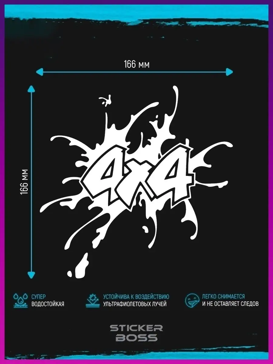 Стикеры бренда Stickerboss – отличное решение для декорирования, украшения и тюнинга вашего автомобиля. Привнесите непреодолимый дух приключений во внешний вид вашего внедорожника с нашей автомобильной наклейкой 4x4. Созданная для настоящих энтузиастов бездорожья, она станет ярким подтверждением вашей страсти к путешествиям по самым сложным тропам. Изготовленная из высококачественного винила, который гарантирует долговечность и устойчивость к внешним воздействиям, таких как ультрафиолетовое излучение, дождь и грязь, наша наклейка разработана для того, чтобы сохранять свой первоначальный вид долгие годы, даже в самых суровых условиях эксплуатации. С простым и интуитивно понятным процессом наклейки вы сможете легко установить стикер на любую чистую и гладкую поверхность вашего автомобиля, будь то капот, дверь или задний бампер, добавив индивидуальности и выделяя вашего железного коня из толпы. Не важно, насколько бездорожье сложно, ваш девиз будет вдохновлять вас на новые подвиги, а ваш внедорожник с такой наклейкой заявит всем о жажде непроторенных путей и свободы духа.