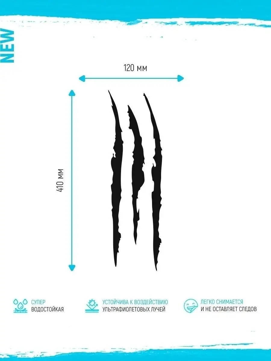 • Эффектный вид: Стикер создает реалистичную иллюзию царапин, добавляя агрессивный и стильный акцент к внешнему виду вашего авто.