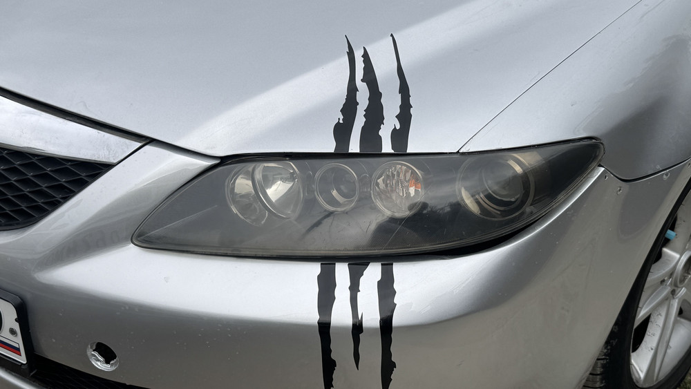 Представляем современную автомобильную наклейку для тех, кто стремится добавить своему авто яркий и выразительный акцент. Эта уникальная наклейка имитирует эффект царапин на фарах, придавая автомобилю вид, словно прошедшего через сложные приключения.