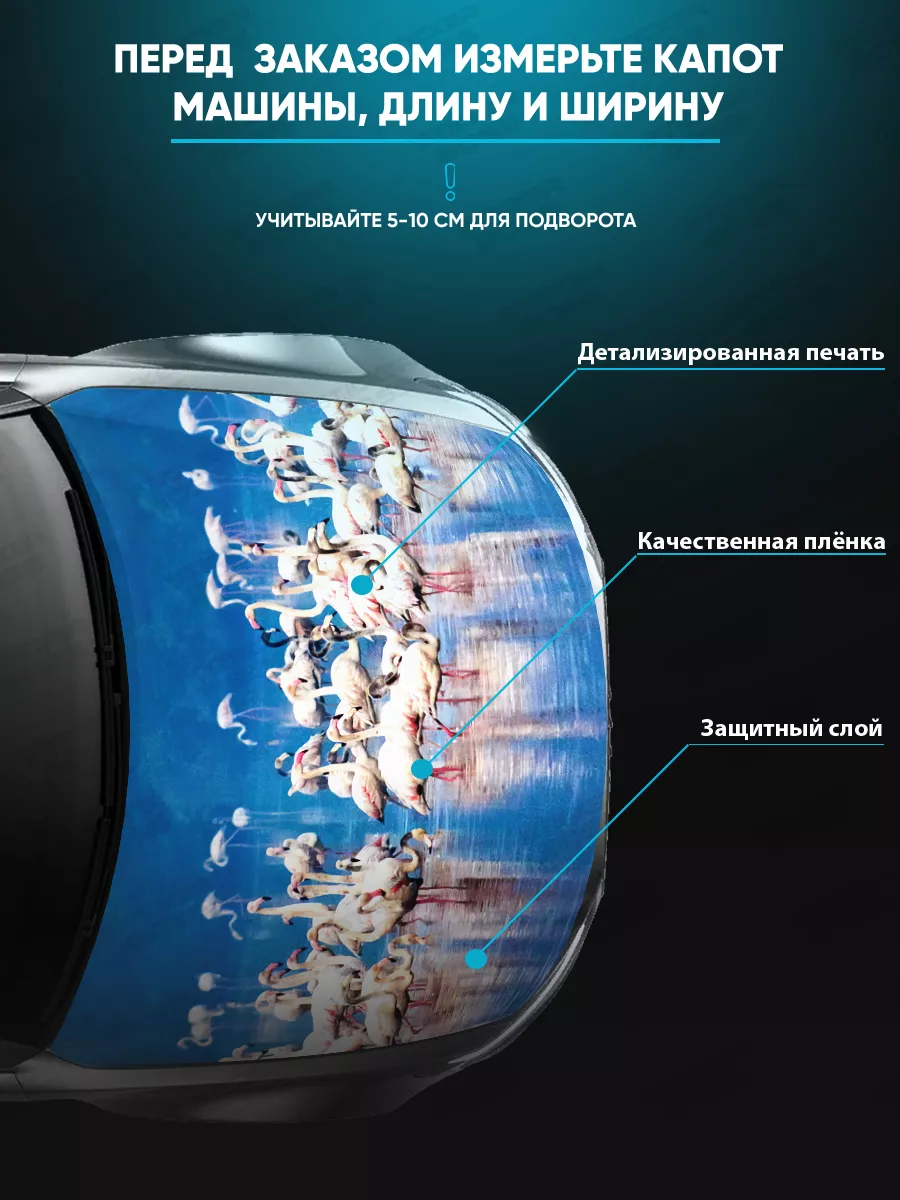 Предлагаем вашему вниманию большую декоративную наклейку на капот вашего авто. Размер стикера универсальный - 155х119 см, подойдет на капоты большинства популярных авто, будь то седан, хэтчбек или универсал. При необходимости можно подрезать лист под нужный размер. При изготовлении этих автонаклеек мы используем высококачественную самоклеящуюся виниловую пленку ПВХ, которая обеспечивает надежное приклеивание к поверхности, устойчива к любому виду моек и агрессивным погодным условиям, не боится пыли и влаги, не выгорает на солнце благодаря дополнительному верхнему слою ламинации. При желании, легко снимается, не оставляя следов. В наличии множество различных вариантов на любой вкус – в коллекции есть принты с надписями, героями известных кинофильмов, динамичные изображения львов, тигров, волков, медведей, леопардов, собак, лошадей, и прочих животных, принты в стиле аниме, флаги России, флаги известных футбольных клубов, горы, города, живописные пейзажи и многое другое. Наклейка позволяет украсить автомобиль и добавить ему стиля и индивидуальности, декорировать под ваши индивидуальные взгляды на дизайн машины. Товар упаковывается в специальную защитную тубу, что позволяет обеспечить его сохранность во время доставки и порадовать наших покупателей яркими красками и высоким качеством наших стикеров. Они так же станут отличным подарком вашим близким на новый год, день рождения, женщинам на 8 марта и мужчинам на 23 февраля. Сделайте повседневную езду на машине ярче, вместе с продукцией бренда Stickerboss!