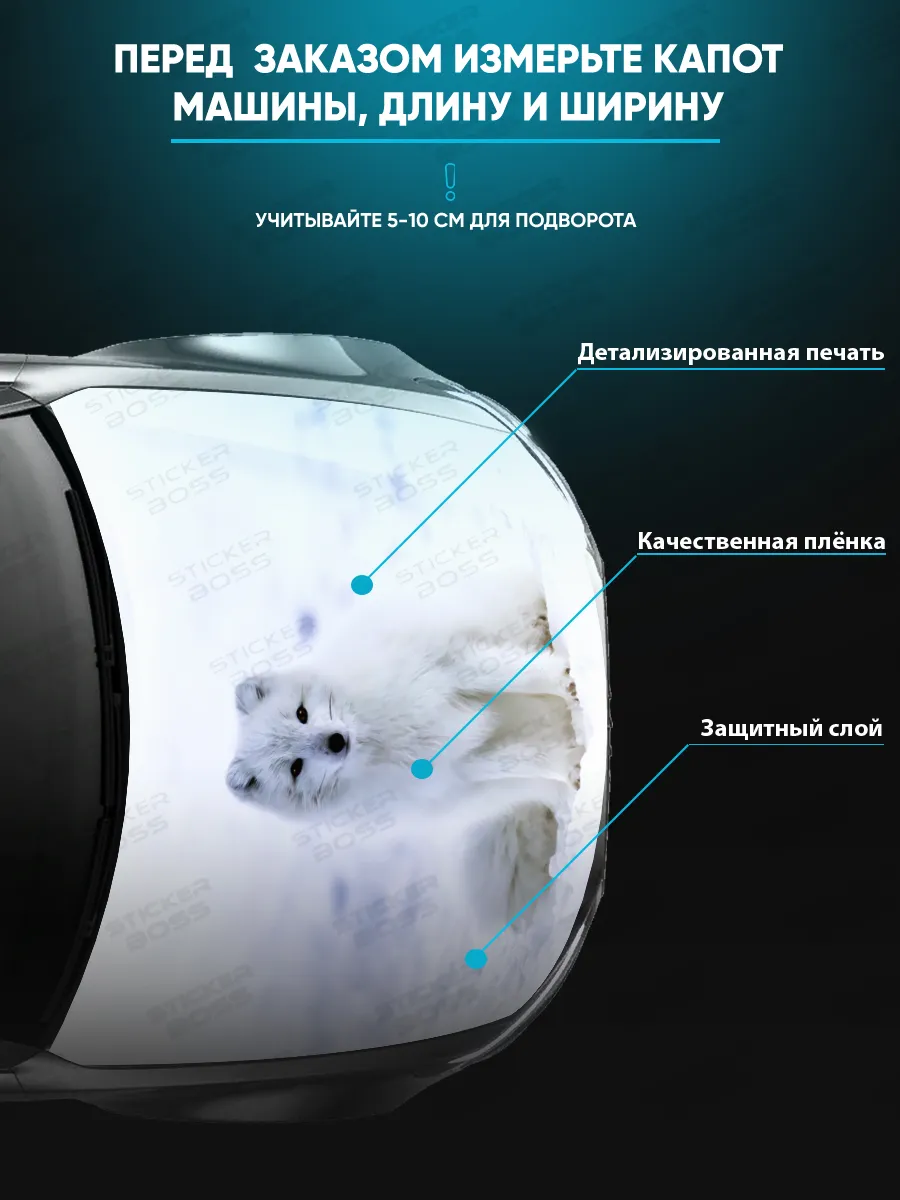 Предлагаем вашему вниманию большую декоративную наклейку на капот вашего авто. Размер стикера универсальный - 155х119 см, подойдет на капоты большинства популярных авто, будь то седан, хэтчбек или универсал. При необходимости можно подрезать лист под нужный размер. При изготовлении этих автонаклеек мы используем высококачественную самоклеящуюся виниловую пленку ПВХ, которая обеспечивает надежное приклеивание к поверхности, устойчива к любому виду моек и агрессивным погодным условиям, не боится пыли и влаги, не выгорает на солнце благодаря дополнительному верхнему слою ламинации. При желании, легко снимается, не оставляя следов. В наличии множество различных вариантов на любой вкус – в коллекции есть принты с надписями, героями известных кинофильмов, динамичные изображения львов, тигров, волков, медведей, леопардов, собак, лошадей, и прочих животных, принты в стиле аниме, флаги России, флаги известных футбольных клубов, горы, города, живописные пейзажи и многое другое. Наклейка позволяет украсить автомобиль и добавить ему стиля и индивидуальности, декорировать под ваши индивидуальные взгляды на дизайн машины. Товар упаковывается в специальную защитную тубу, что позволяет обеспечить его сохранность во время доставки и порадовать наших покупателей яркими красками и высоким качеством наших стикеров. Они так же станут отличным подарком вашим близким на новый год, день рождения, женщинам на 8 марта и мужчинам на 23 февраля. Сделайте повседневную езду на машине ярче, вместе с продукцией бренда Stickerboss!