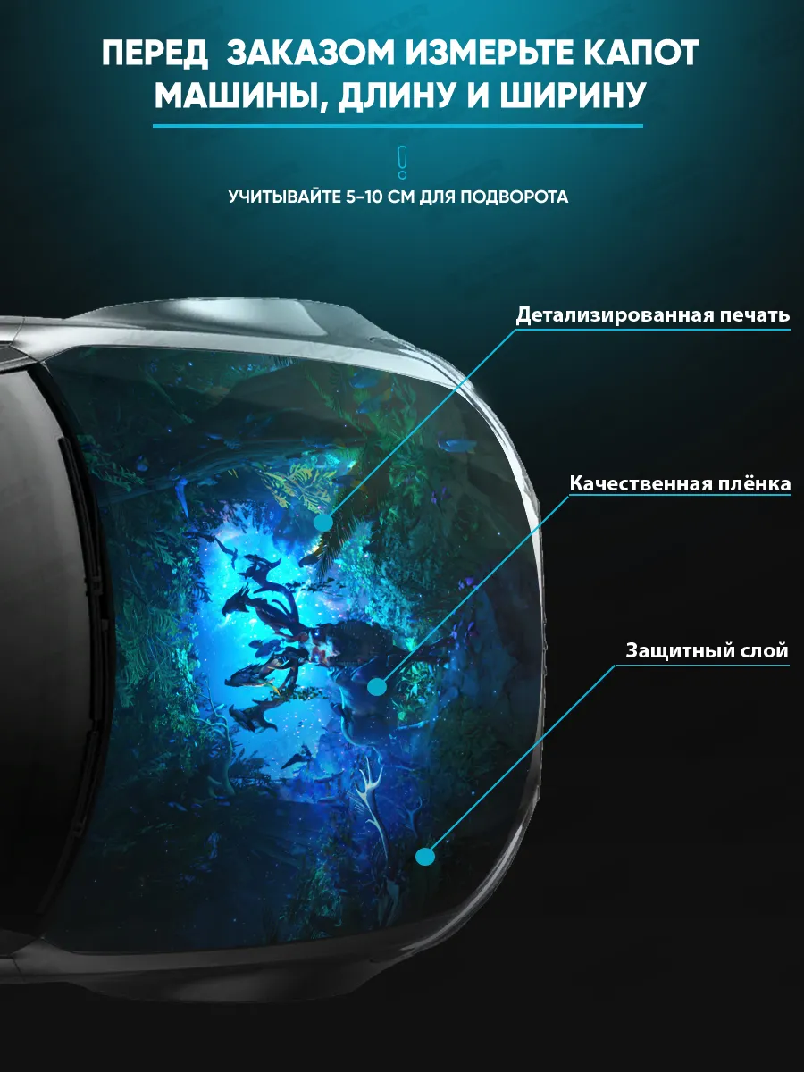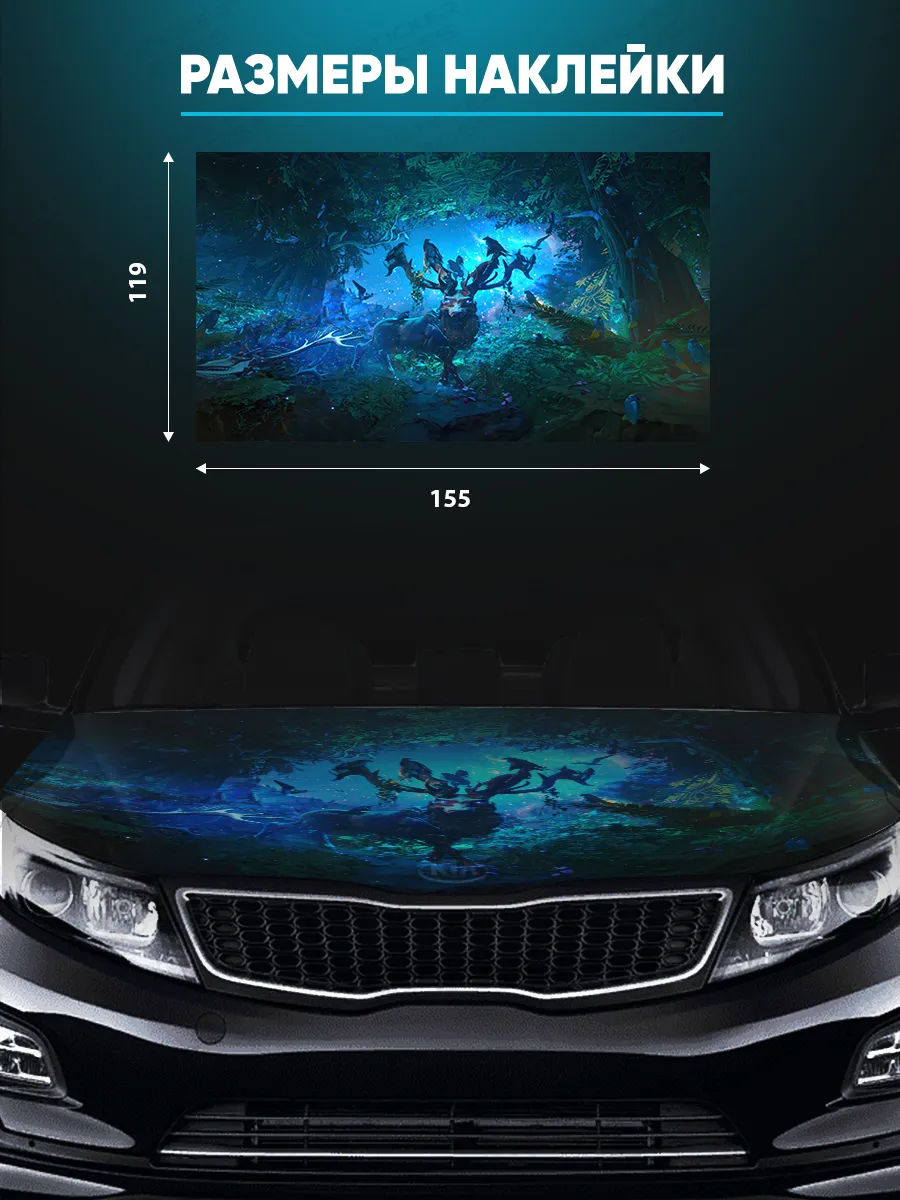 Предлагаем вашему вниманию большую декоративную наклейку на капот вашего авто. Размер стикера универсальный - 155х119 см, подойдет на капоты большинства популярных авто, будь то седан, хэтчбек или универсал. При необходимости можно подрезать лист под нужный размер. При изготовлении этих автонаклеек мы используем высококачественную самоклеящуюся виниловую пленку ПВХ, которая обеспечивает надежное приклеивание к поверхности, устойчива к любому виду моек и агрессивным погодным условиям, не боится пыли и влаги, не выгорает на солнце благодаря дополнительному верхнему слою ламинации. При желании, легко снимается, не оставляя следов. В наличии множество различных вариантов на любой вкус – в коллекции есть принты с надписями, героями известных кинофильмов, динамичные изображения львов, тигров, волков, медведей, леопардов, собак, лошадей, и прочих животных, принты в стиле аниме, флаги России, флаги известных футбольных клубов, горы, города, живописные пейзажи и многое другое. Наклейка позволяет украсить автомобиль и добавить ему стиля и индивидуальности, декорировать под ваши индивидуальные взгляды на дизайн машины. Товар упаковывается в специальную защитную тубу, что позволяет обеспечить его сохранность во время доставки и порадовать наших покупателей яркими красками и высоким качеством наших стикеров. Они так же станут отличным подарком вашим близким на новый год, день рождения, женщинам на 8 марта и мужчинам на 23 февраля. Сделайте повседневную езду на машине ярче, вместе с продукцией бренда Stickerboss!