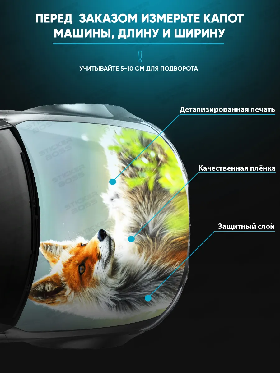 Предлагаем вашему вниманию большую декоративную наклейку на капот вашего авто. Размер стикера универсальный - 155х119 см, подойдет на капоты большинства популярных авто, будь то седан, хэтчбек или универсал. При необходимости можно подрезать лист под нужный размер. При изготовлении этих автонаклеек мы используем высококачественную самоклеящуюся виниловую пленку ПВХ, которая обеспечивает надежное приклеивание к поверхности, устойчива к любому виду моек и агрессивным погодным условиям, не боится пыли и влаги, не выгорает на солнце благодаря дополнительному верхнему слою ламинации. При желании, легко снимается, не оставляя следов. В наличии множество различных вариантов на любой вкус – в коллекции есть принты с надписями, героями известных кинофильмов, динамичные изображения львов, тигров, волков, медведей, леопардов, собак, лошадей, и прочих животных, принты в стиле аниме, флаги России, флаги известных футбольных клубов, горы, города, живописные пейзажи и многое другое. Наклейка позволяет украсить автомобиль и добавить ему стиля и индивидуальности, декорировать под ваши индивидуальные взгляды на дизайн машины. Товар упаковывается в специальную защитную тубу, что позволяет обеспечить его сохранность во время доставки и порадовать наших покупателей яркими красками и высоким качеством наших стикеров. Они так же станут отличным подарком вашим близким на новый год, день рождения, женщинам на 8 марта и мужчинам на 23 февраля. Сделайте повседневную езду на машине ярче, вместе с продукцией бренда Stickerboss!