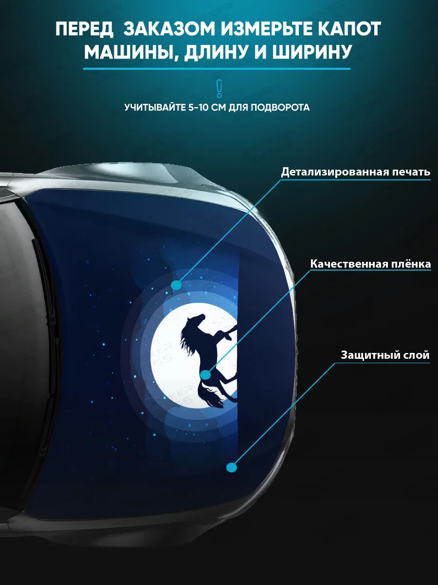 Предлагаем вашему вниманию большую декоративную наклейку на капот вашего авто. Размер стикера универсальный - 155х119 см, подойдет на капоты большинства популярных авто, будь то седан, хэтчбек или универсал. При необходимости можно подрезать лист под нужный размер. При изготовлении этих автонаклеек мы используем высококачественную самоклеящуюся виниловую пленку ПВХ, которая обеспечивает надежное приклеивание к поверхности, устойчива к любому виду моек и агрессивным погодным условиям, не боится пыли и влаги, не выгорает на солнце благодаря дополнительному верхнему слою ламинации. При желании, легко снимается, не оставляя следов. В наличии множество различных вариантов на любой вкус – в коллекции есть принты с надписями, героями известных кинофильмов, динамичные изображения львов, тигров, волков, медведей, леопардов, собак, лошадей, и прочих животных, принты в стиле аниме, флаги России, флаги известных футбольных клубов, горы, города, живописные пейзажи и многое другое. Наклейка позволяет украсить автомобиль и добавить ему стиля и индивидуальности, декорировать под ваши индивидуальные взгляды на дизайн машины. Товар упаковывается в специальную защитную тубу, что позволяет обеспечить его сохранность во время доставки и порадовать наших покупателей яркими красками и высоким качеством наших стикеров. Они так же станут отличным подарком вашим близким на новый год, день рождения, женщинам на 8 марта и мужчинам на 23 февраля. Сделайте повседневную езду на машине ярче, вместе с продукцией бренда Stickerboss!