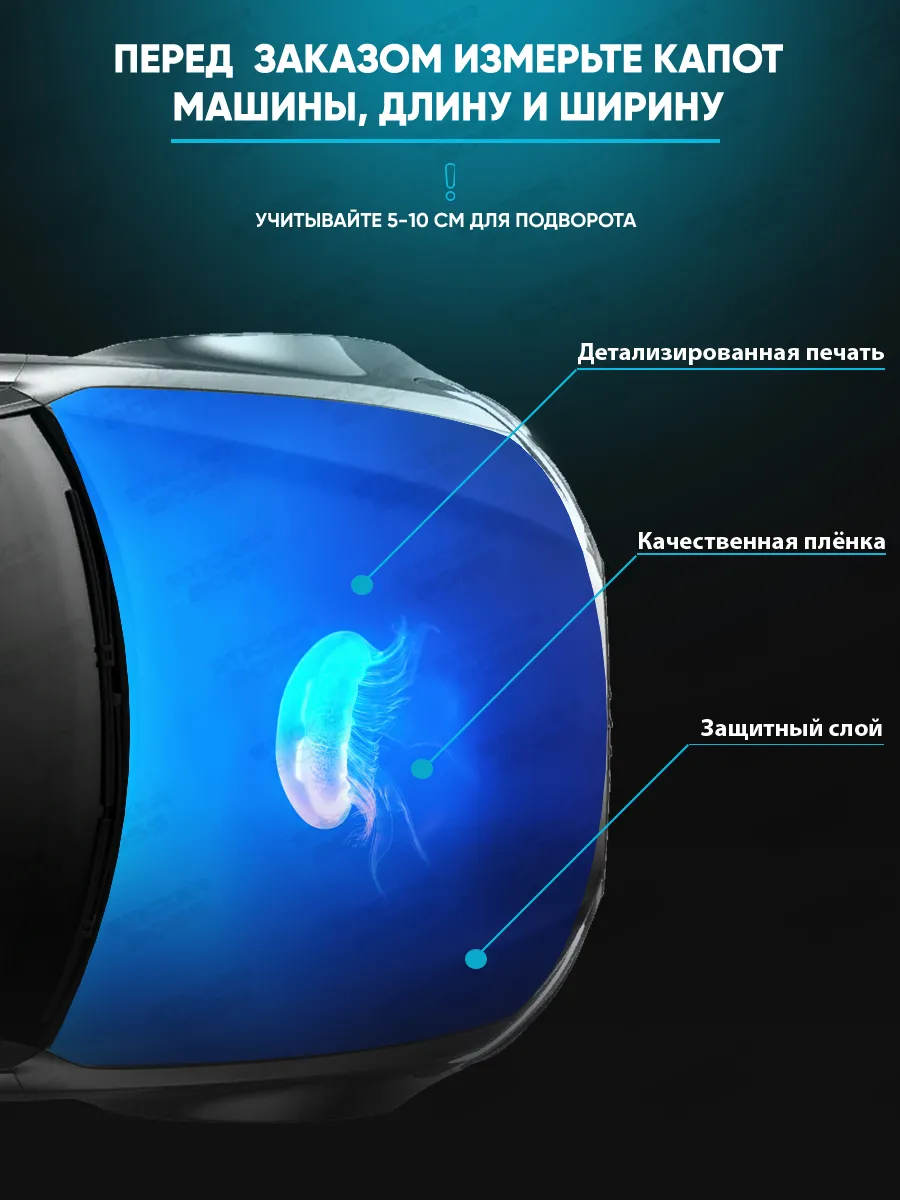 Предлагаем вашему вниманию большую декоративную наклейку на капот вашего авто. Размер стикера универсальный - 155х119 см, подойдет на капоты большинства популярных авто, будь то седан, хэтчбек или универсал. При необходимости можно подрезать лист под нужный размер. При изготовлении этих автонаклеек мы используем высококачественную самоклеящуюся виниловую пленку ПВХ, которая обеспечивает надежное приклеивание к поверхности, устойчива к любому виду моек и агрессивным погодным условиям, не боится пыли и влаги, не выгорает на солнце благодаря дополнительному верхнему слою ламинации. При желании, легко снимается, не оставляя следов. В наличии множество различных вариантов на любой вкус – в коллекции есть принты с надписями, героями известных кинофильмов, динамичные изображения львов, тигров, волков, медведей, леопардов, собак, лошадей, и прочих животных, принты в стиле аниме, флаги России, флаги известных футбольных клубов, горы, города, живописные пейзажи и многое другое. Наклейка позволяет украсить автомобиль и добавить ему стиля и индивидуальности, декорировать под ваши индивидуальные взгляды на дизайн машины. Товар упаковывается в специальную защитную тубу, что позволяет обеспечить его сохранность во время доставки и порадовать наших покупателей яркими красками и высоким качеством наших стикеров. Они так же станут отличным подарком вашим близким на новый год, день рождения, женщинам на 8 марта и мужчинам на 23 февраля. Сделайте повседневную езду на машине ярче, вместе с продукцией бренда Stickerboss!