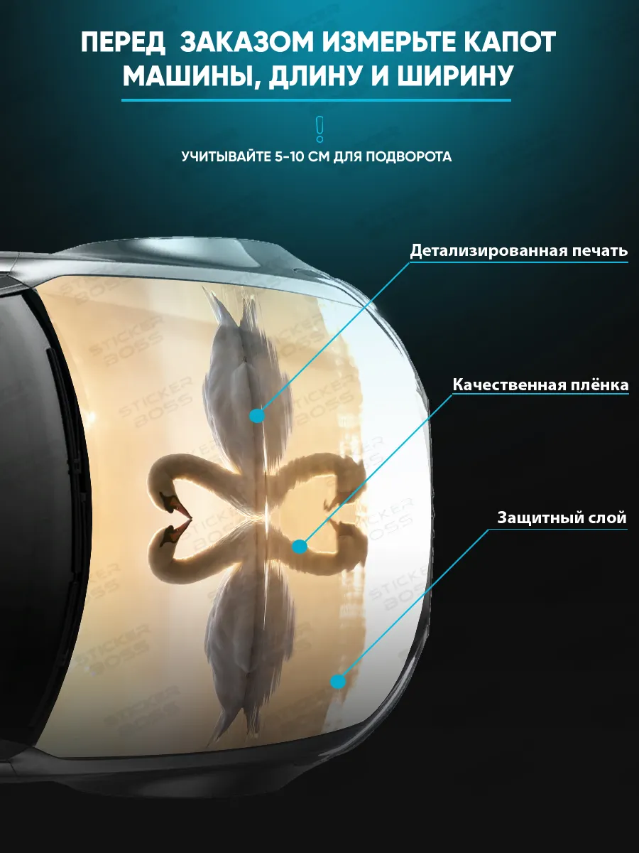 Предлагаем вашему вниманию большую декоративную наклейку на капот вашего авто. Размер стикера универсальный - 155х119 см, подойдет на капоты большинства популярных авто, будь то седан, хэтчбек или универсал. При необходимости можно подрезать лист под нужный размер. При изготовлении этих автонаклеек мы используем высококачественную самоклеящуюся виниловую пленку ПВХ, которая обеспечивает надежное приклеивание к поверхности, устойчива к любому виду моек и агрессивным погодным условиям, не боится пыли и влаги, не выгорает на солнце благодаря дополнительному верхнему слою ламинации. При желании, легко снимается, не оставляя следов. В наличии множество различных вариантов на любой вкус – в коллекции есть принты с надписями, героями известных кинофильмов, динамичные изображения львов, тигров, волков, медведей, леопардов, собак, лошадей, и прочих животных, принты в стиле аниме, флаги России, флаги известных футбольных клубов, горы, города, живописные пейзажи и многое другое. Наклейка позволяет украсить автомобиль и добавить ему стиля и индивидуальности, декорировать под ваши индивидуальные взгляды на дизайн машины. Товар упаковывается в специальную защитную тубу, что позволяет обеспечить его сохранность во время доставки и порадовать наших покупателей яркими красками и высоким качеством наших стикеров. Они так же станут отличным подарком вашим близким на новый год, день рождения, женщинам на 8 марта и мужчинам на 23 февраля. Сделайте повседневную езду на машине ярче, вместе с продукцией бренда Stickerboss!