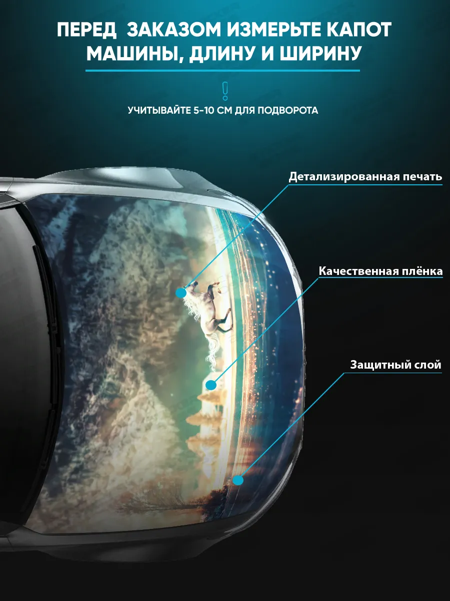 Предлагаем вашему вниманию большую декоративную наклейку на капот вашего авто. Размер стикера универсальный - 155х119 см, подойдет на капоты большинства популярных авто, будь то седан, хэтчбек или универсал. При необходимости можно подрезать лист под нужный размер. При изготовлении этих автонаклеек мы используем высококачественную самоклеящуюся виниловую пленку ПВХ, которая обеспечивает надежное приклеивание к поверхности, устойчива к любому виду моек и агрессивным погодным условиям, не боится пыли и влаги, не выгорает на солнце благодаря дополнительному верхнему слою ламинации. При желании, легко снимается, не оставляя следов. В наличии множество различных вариантов на любой вкус – в коллекции есть принты с надписями, героями известных кинофильмов, динамичные изображения львов, тигров, волков, медведей, леопардов, собак, лошадей, и прочих животных, принты в стиле аниме, флаги России, флаги известных футбольных клубов, горы, города, живописные пейзажи и многое другое. Наклейка позволяет украсить автомобиль и добавить ему стиля и индивидуальности, декорировать под ваши индивидуальные взгляды на дизайн машины. Товар упаковывается в специальную защитную тубу, что позволяет обеспечить его сохранность во время доставки и порадовать наших покупателей яркими красками и высоким качеством наших стикеров. Они так же станут отличным подарком вашим близким на новый год, день рождения, женщинам на 8 марта и мужчинам на 23 февраля. Сделайте повседневную езду на машине ярче, вместе с продукцией бренда Stickerboss!