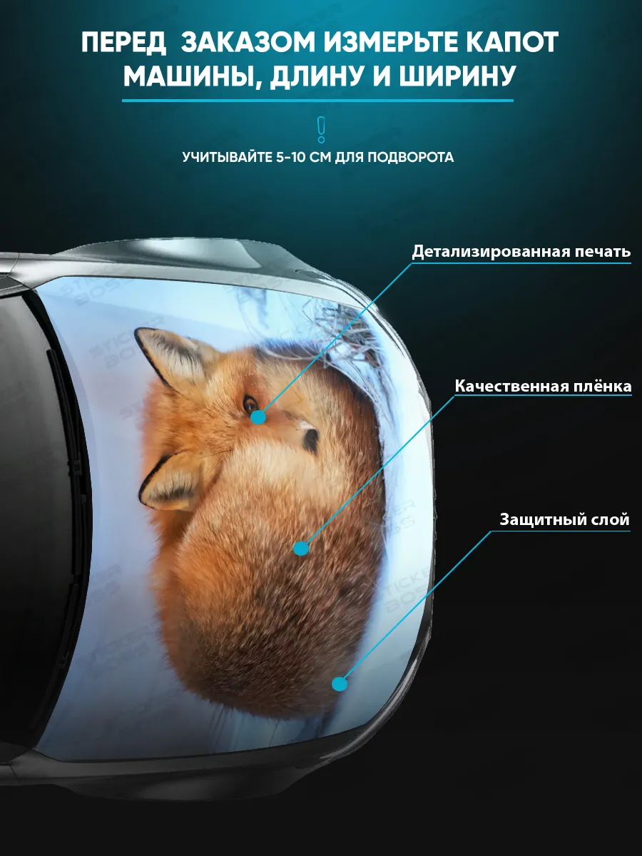 Предлагаем вашему вниманию большую декоративную наклейку на капот вашего авто. Размер стикера универсальный - 155х119 см, подойдет на капоты большинства популярных авто, будь то седан, хэтчбек или универсал. При необходимости можно подрезать лист под нужный размер. При изготовлении этих автонаклеек мы используем высококачественную самоклеящуюся виниловую пленку ПВХ, которая обеспечивает надежное приклеивание к поверхности, устойчива к любому виду моек и агрессивным погодным условиям, не боится пыли и влаги, не выгорает на солнце благодаря дополнительному верхнему слою ламинации. При желании, легко снимается, не оставляя следов. В наличии множество различных вариантов на любой вкус – в коллекции есть принты с надписями, героями известных кинофильмов, динамичные изображения львов, тигров, волков, медведей, леопардов, собак, лошадей, и прочих животных, принты в стиле аниме, флаги России, флаги известных футбольных клубов, горы, города, живописные пейзажи и многое другое. Наклейка позволяет украсить автомобиль и добавить ему стиля и индивидуальности, декорировать под ваши индивидуальные взгляды на дизайн машины. Товар упаковывается в специальную защитную тубу, что позволяет обеспечить его сохранность во время доставки и порадовать наших покупателей яркими красками и высоким качеством наших стикеров. Они так же станут отличным подарком вашим близким на новый год, день рождения, женщинам на 8 марта и мужчинам на 23 февраля. Сделайте повседневную езду на машине ярче, вместе с продукцией бренда Stickerboss!