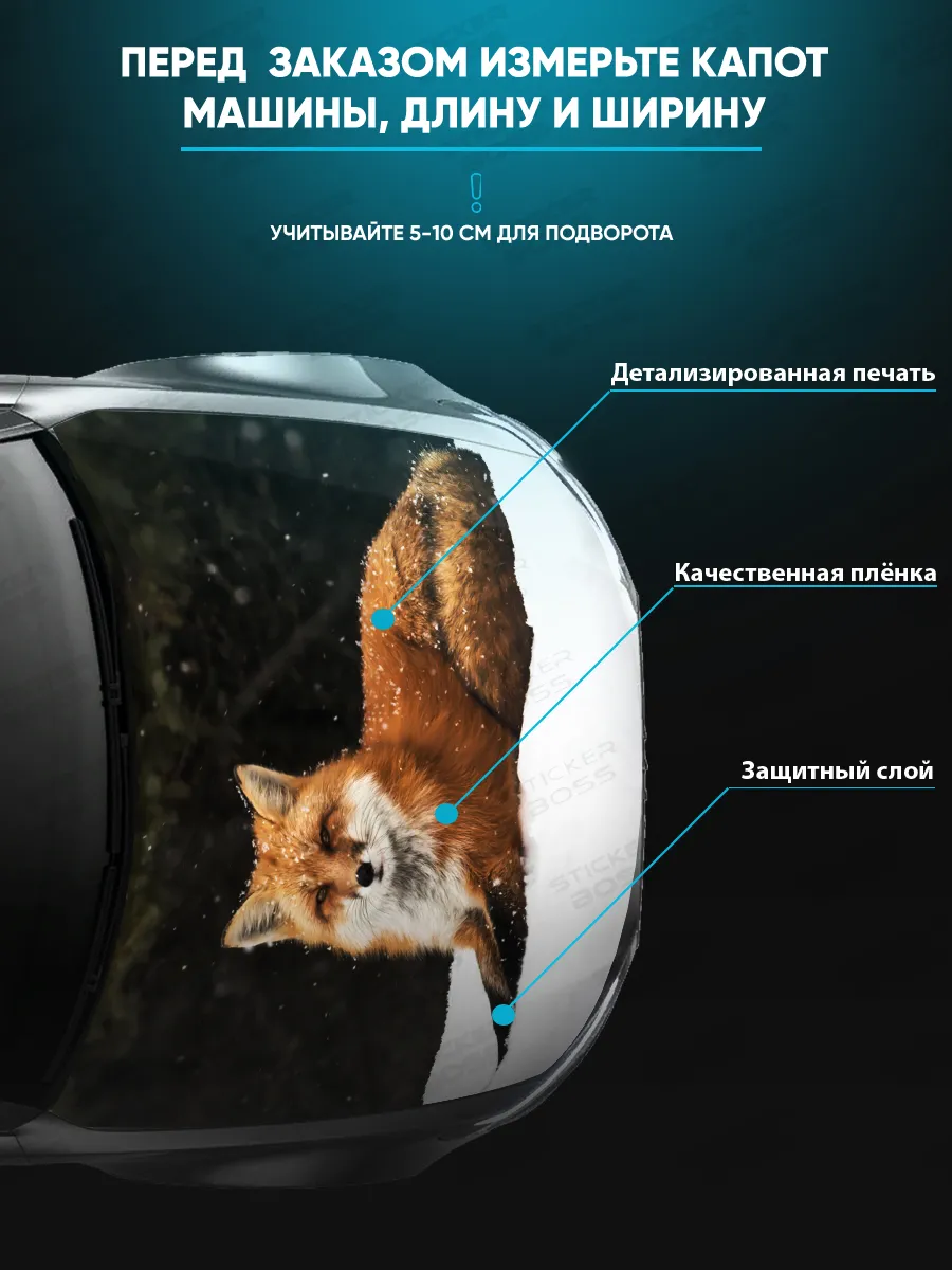 Предлагаем вашему вниманию большую декоративную наклейку на капот вашего авто. Размер стикера универсальный - 155х119 см, подойдет на капоты большинства популярных авто, будь то седан, хэтчбек или универсал. При необходимости можно подрезать лист под нужный размер. При изготовлении этих автонаклеек мы используем высококачественную самоклеящуюся виниловую пленку ПВХ, которая обеспечивает надежное приклеивание к поверхности, устойчива к любому виду моек и агрессивным погодным условиям, не боится пыли и влаги, не выгорает на солнце благодаря дополнительному верхнему слою ламинации. При желании, легко снимается, не оставляя следов. В наличии множество различных вариантов на любой вкус – в коллекции есть принты с надписями, героями известных кинофильмов, динамичные изображения львов, тигров, волков, медведей, леопардов, собак, лошадей, и прочих животных, принты в стиле аниме, флаги России, флаги известных футбольных клубов, горы, города, живописные пейзажи и многое другое. Наклейка позволяет украсить автомобиль и добавить ему стиля и индивидуальности, декорировать под ваши индивидуальные взгляды на дизайн машины. Товар упаковывается в специальную защитную тубу, что позволяет обеспечить его сохранность во время доставки и порадовать наших покупателей яркими красками и высоким качеством наших стикеров. Они так же станут отличным подарком вашим близким на новый год, день рождения, женщинам на 8 марта и мужчинам на 23 февраля. Сделайте повседневную езду на машине ярче, вместе с продукцией бренда Stickerboss!