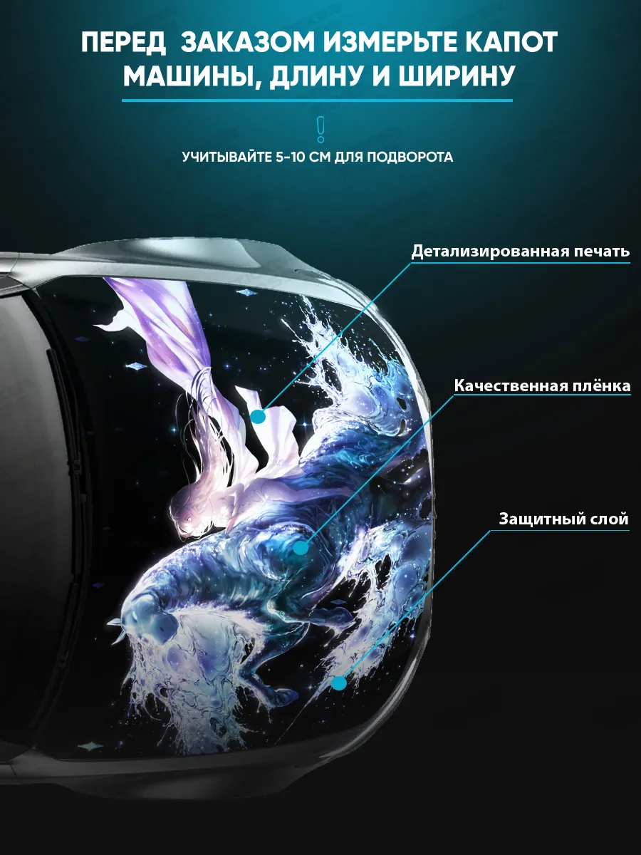 Предлагаем вашему вниманию большую декоративную наклейку на капот вашего авто. Размер стикера универсальный - 155х119 см, подойдет на капоты большинства популярных авто, будь то седан, хэтчбек или универсал. При необходимости можно подрезать лист под нужный размер. При изготовлении этих автонаклеек мы используем высококачественную самоклеящуюся виниловую пленку ПВХ, которая обеспечивает надежное приклеивание к поверхности, устойчива к любому виду моек и агрессивным погодным условиям, не боится пыли и влаги, не выгорает на солнце благодаря дополнительному верхнему слою ламинации. При желании, легко снимается, не оставляя следов. В наличии множество различных вариантов на любой вкус – в коллекции есть принты с надписями, героями известных кинофильмов, динамичные изображения львов, тигров, волков, медведей, леопардов, собак, лошадей, и прочих животных, принты в стиле аниме, флаги России, флаги известных футбольных клубов, горы, города, живописные пейзажи и многое другое. Наклейка позволяет украсить автомобиль и добавить ему стиля и индивидуальности, декорировать под ваши индивидуальные взгляды на дизайн машины. Товар упаковывается в специальную защитную тубу, что позволяет обеспечить его сохранность во время доставки и порадовать наших покупателей яркими красками и высоким качеством наших стикеров. Они так же станут отличным подарком вашим близким на новый год, день рождения, женщинам на 8 марта и мужчинам на 23 февраля. Сделайте повседневную езду на машине ярче, вместе с продукцией бренда Stickerboss!