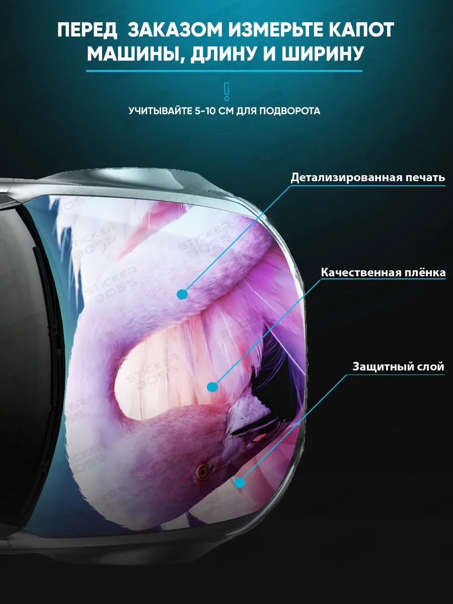 Предлагаем вашему вниманию большую декоративную наклейку на капот вашего авто. Размер стикера универсальный - 155х119 см, подойдет на капоты большинства популярных авто, будь то седан, хэтчбек или универсал. При необходимости можно подрезать лист под нужный размер. При изготовлении этих автонаклеек мы используем высококачественную самоклеящуюся виниловую пленку ПВХ, которая обеспечивает надежное приклеивание к поверхности, устойчива к любому виду моек и агрессивным погодным условиям, не боится пыли и влаги, не выгорает на солнце благодаря дополнительному верхнему слою ламинации. При желании, легко снимается, не оставляя следов. В наличии множество различных вариантов на любой вкус – в коллекции есть принты с надписями, героями известных кинофильмов, динамичные изображения львов, тигров, волков, медведей, леопардов, собак, лошадей, и прочих животных, принты в стиле аниме, флаги России, флаги известных футбольных клубов, горы, города, живописные пейзажи и многое другое. Наклейка позволяет украсить автомобиль и добавить ему стиля и индивидуальности, декорировать под ваши индивидуальные взгляды на дизайн машины. Товар упаковывается в специальную защитную тубу, что позволяет обеспечить его сохранность во время доставки и порадовать наших покупателей яркими красками и высоким качеством наших стикеров. Они так же станут отличным подарком вашим близким на новый год, день рождения, женщинам на 8 марта и мужчинам на 23 февраля. Сделайте повседневную езду на машине ярче, вместе с продукцией бренда Stickerboss!