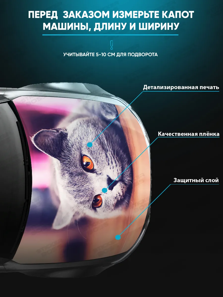 Предлагаем вашему вниманию большую декоративную наклейку на капот вашего авто. Размер стикера универсальный - 155х119 см, подойдет на капоты большинства популярных авто, будь то седан, хэтчбек или универсал. При необходимости можно подрезать лист под нужный размер. При изготовлении этих автонаклеек мы используем высококачественную самоклеящуюся виниловую пленку ПВХ, которая обеспечивает надежное приклеивание к поверхности, устойчива к любому виду моек и агрессивным погодным условиям, не боится пыли и влаги, не выгорает на солнце благодаря дополнительному верхнему слою ламинации. При желании, легко снимается, не оставляя следов. В наличии множество различных вариантов на любой вкус – в коллекции есть принты с надписями, героями известных кинофильмов, динамичные изображения львов, тигров, волков, медведей, леопардов, собак, лошадей, и прочих животных, принты в стиле аниме, флаги России, флаги известных футбольных клубов, горы, города, живописные пейзажи и многое другое. Наклейка позволяет украсить автомобиль и добавить ему стиля и индивидуальности, декорировать под ваши индивидуальные взгляды на дизайн машины. Товар упаковывается в специальную защитную тубу, что позволяет обеспечить его сохранность во время доставки и порадовать наших покупателей яркими красками и высоким качеством наших стикеров. Они так же станут отличным подарком вашим близким на новый год, день рождения, женщинам на 8 марта и мужчинам на 23 февраля. Сделайте повседневную езду на машине ярче, вместе с продукцией бренда Stickerboss!