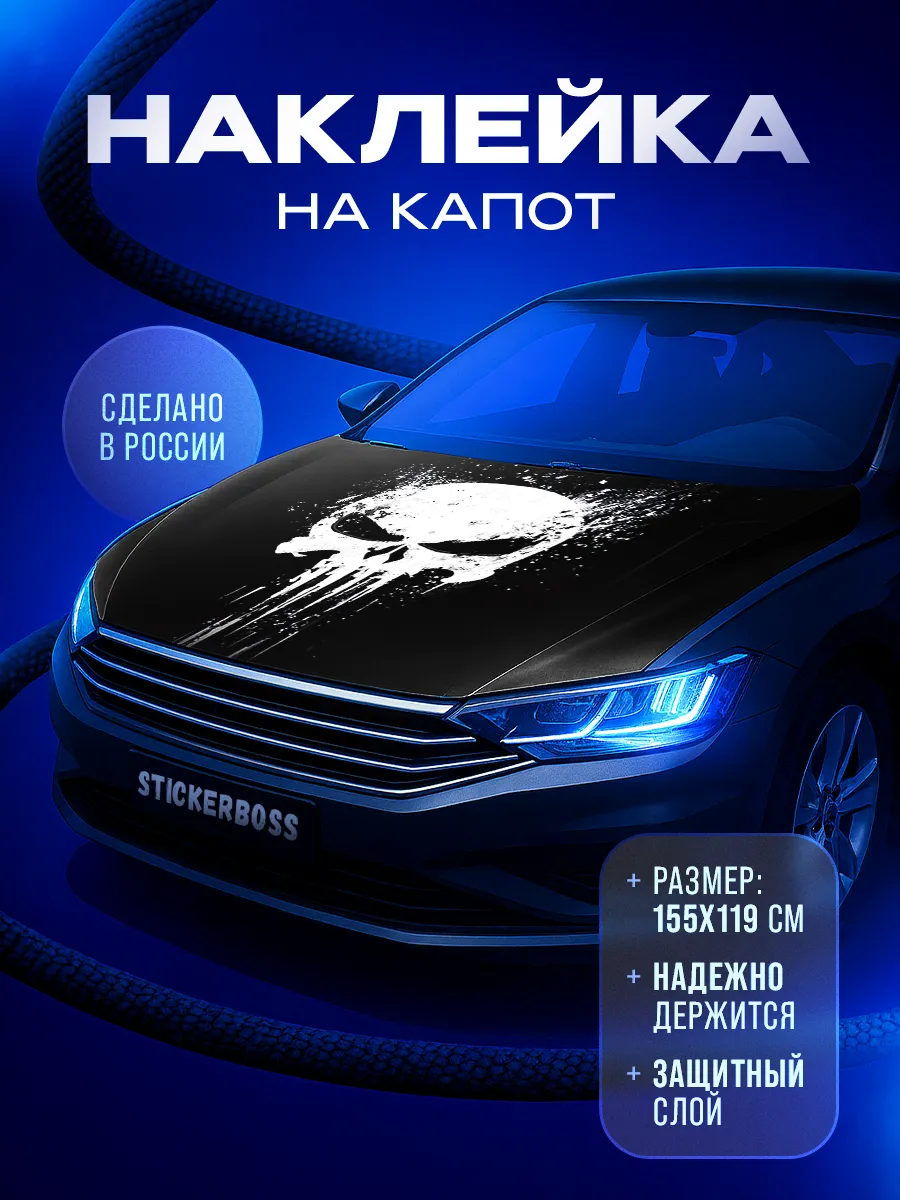 Предлагаем вашему вниманию большую декоративную наклейку на капот вашего авто. Размер стикера универсальный - 155х119 см, подойдет на капоты большинства популярных авто, будь то седан, хэтчбек или универсал. При необходимости можно подрезать лист под нужный размер. При изготовлении этих автонаклеек мы используем высококачественную самоклеящуюся виниловую пленку ПВХ, которая обеспечивает надежное приклеивание к поверхности, устойчива к любому виду моек и агрессивным погодным условиям, не боится пыли и влаги, не выгорает на солнце благодаря дополнительному верхнему слою ламинации. При желании, легко снимается, не оставляя следов. В наличии множество различных вариантов на любой вкус – в коллекции есть принты с надписями, героями известных кинофильмов, динамичные изображения львов, тигров, волков, медведей, леопардов, собак, лошадей, и прочих животных, принты в стиле аниме, флаги России, флаги известных футбольных клубов, горы, города, живописные пейзажи и многое другое. Наклейка позволяет украсить автомобиль и добавить ему стиля и индивидуальности, декорировать под ваши индивидуальные взгляды на дизайн машины. Товар упаковывается в специальную защитную тубу, что позволяет обеспечить его сохранность во время доставки и порадовать наших покупателей яркими красками и высоким качеством наших стикеров. Они так же станут отличным подарком вашим близким на новый год, день рождения, женщинам на 8 марта и мужчинам на 23 февраля. Сделайте повседневную езду на машине ярче, вместе с продукцией бренда Stickerboss!