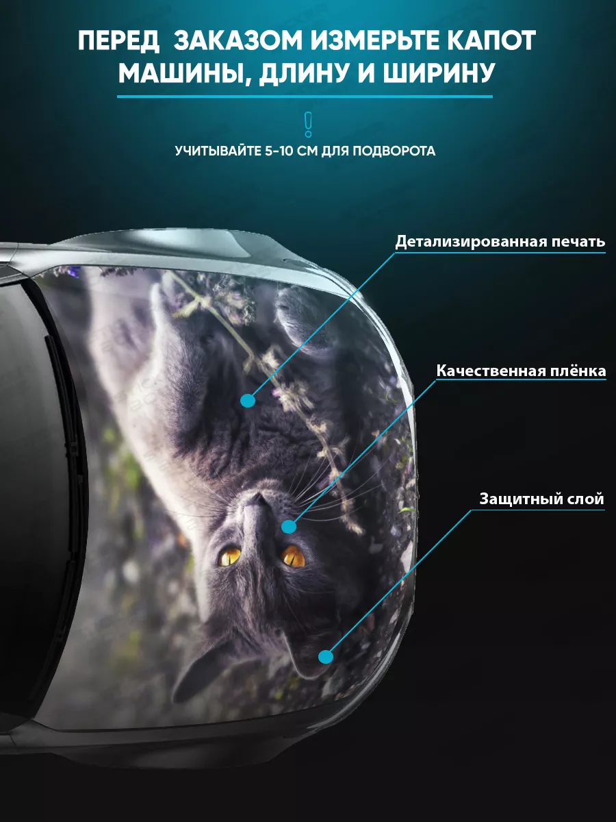 Предлагаем вашему вниманию большую декоративную наклейку на капот вашего авто. Размер стикера универсальный - 155х119 см, подойдет на капоты большинства популярных авто, будь то седан, хэтчбек или универсал. При необходимости можно подрезать лист под нужный размер. При изготовлении этих автонаклеек мы используем высококачественную самоклеящуюся виниловую пленку ПВХ, которая обеспечивает надежное приклеивание к поверхности, устойчива к любому виду моек и агрессивным погодным условиям, не боится пыли и влаги, не выгорает на солнце благодаря дополнительному верхнему слою ламинации. При желании, легко снимается, не оставляя следов. В наличии множество различных вариантов на любой вкус – в коллекции есть принты с надписями, героями известных кинофильмов, динамичные изображения львов, тигров, волков, медведей, леопардов, собак, лошадей, и прочих животных, принты в стиле аниме, флаги России, флаги известных футбольных клубов, горы, города, живописные пейзажи и многое другое. Наклейка позволяет украсить автомобиль и добавить ему стиля и индивидуальности, декорировать под ваши индивидуальные взгляды на дизайн машины. Товар упаковывается в специальную защитную тубу, что позволяет обеспечить его сохранность во время доставки и порадовать наших покупателей яркими красками и высоким качеством наших стикеров. Они так же станут отличным подарком вашим близким на новый год, день рождения, женщинам на 8 марта и мужчинам на 23 февраля. Сделайте повседневную езду на машине ярче, вместе с продукцией бренда Stickerboss!