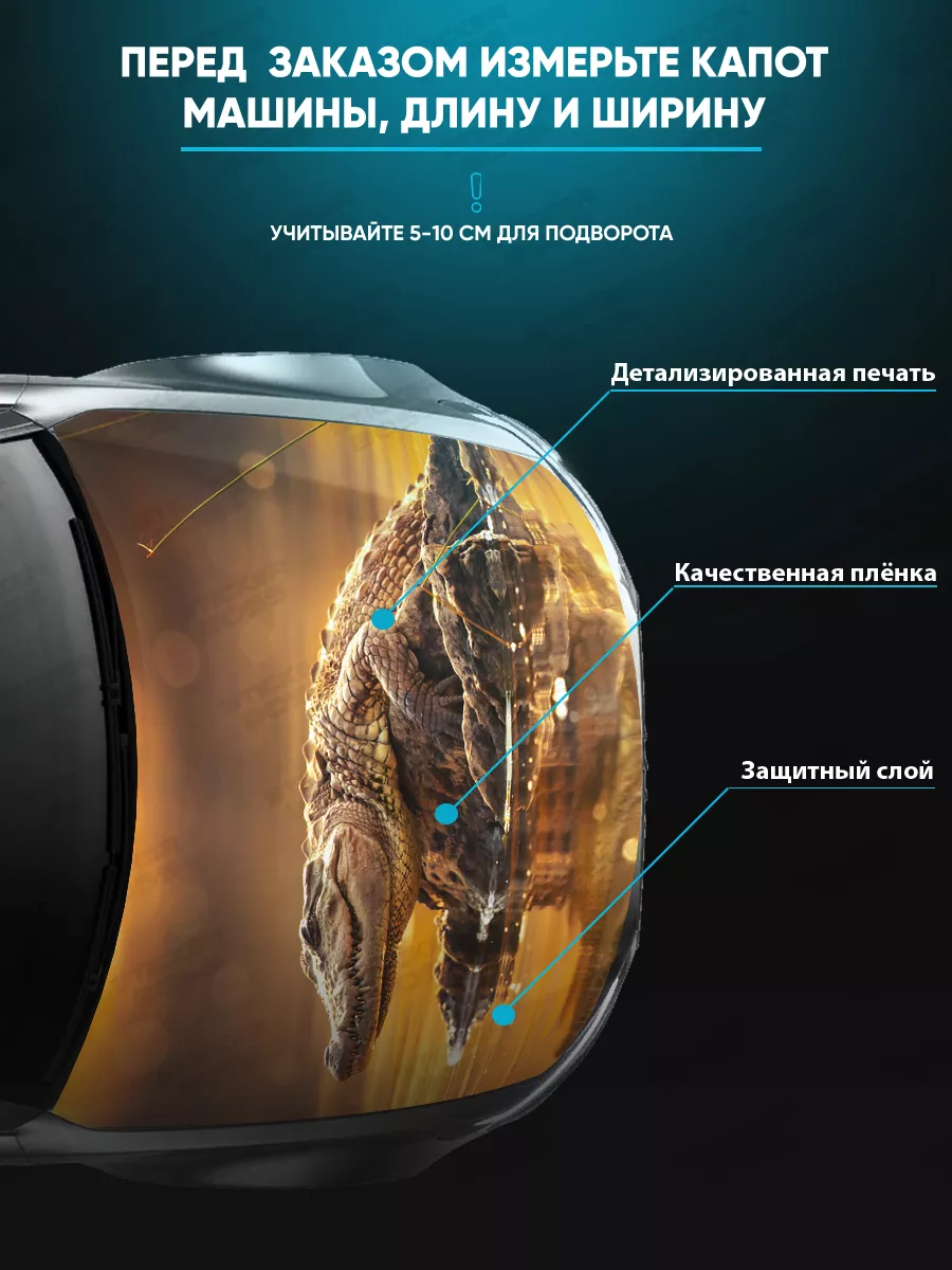 Предлагаем вашему вниманию большую декоративную наклейку на капот вашего авто. Размер стикера универсальный - 155х119 см, подойдет на капоты большинства популярных авто, будь то седан, хэтчбек или универсал. При необходимости можно подрезать лист под нужный размер. При изготовлении этих автонаклеек мы используем высококачественную самоклеящуюся виниловую пленку ПВХ, которая обеспечивает надежное приклеивание к поверхности, устойчива к любому виду моек и агрессивным погодным условиям, не боится пыли и влаги, не выгорает на солнце благодаря дополнительному верхнему слою ламинации. При желании, легко снимается, не оставляя следов. В наличии множество различных вариантов на любой вкус – в коллекции есть принты с надписями, героями известных кинофильмов, динамичные изображения львов, тигров, волков, медведей, леопардов, собак, лошадей, и прочих животных, принты в стиле аниме, флаги России, флаги известных футбольных клубов, горы, города, живописные пейзажи и многое другое. Наклейка позволяет украсить автомобиль и добавить ему стиля и индивидуальности, декорировать под ваши индивидуальные взгляды на дизайн машины. Товар упаковывается в специальную защитную тубу, что позволяет обеспечить его сохранность во время доставки и порадовать наших покупателей яркими красками и высоким качеством наших стикеров. Они так же станут отличным подарком вашим близким на новый год, день рождения, женщинам на 8 марта и мужчинам на 23 февраля. Сделайте повседневную езду на машине ярче, вместе с продукцией бренда Stickerboss!