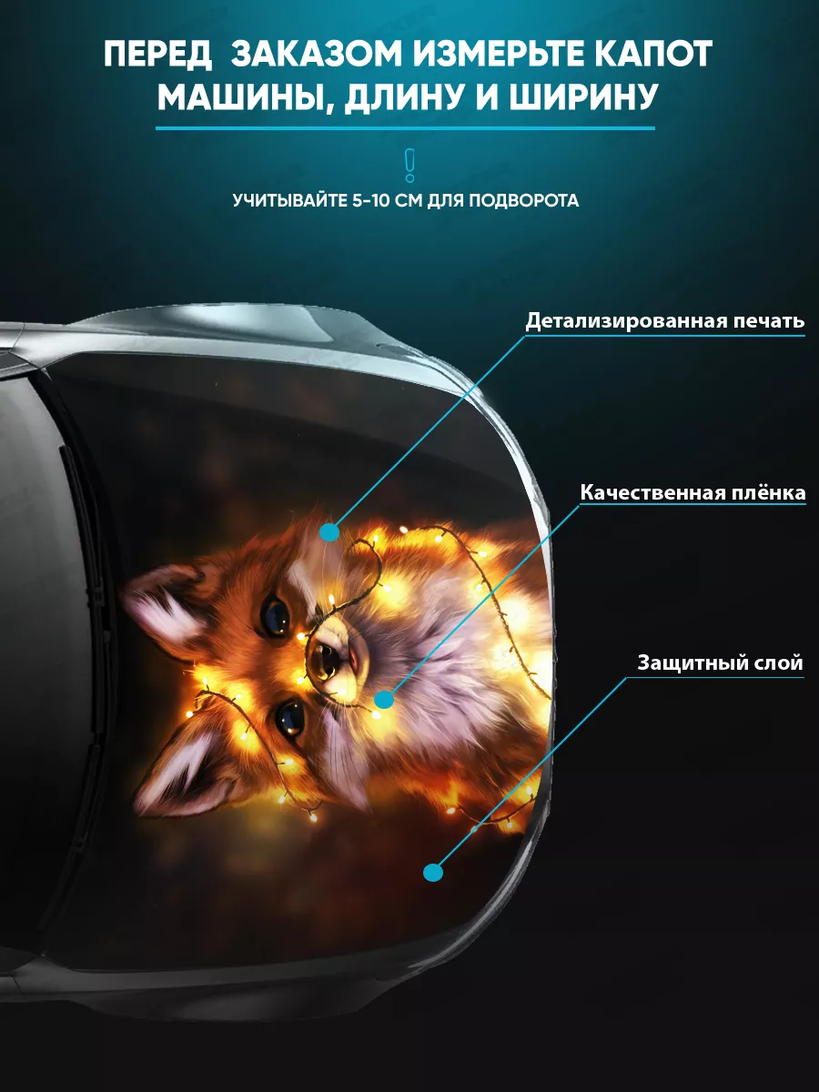 Предлагаем вашему вниманию большую декоративную наклейку на капот вашего авто. Размер стикера универсальный - 155х119 см, подойдет на капоты большинства популярных авто, будь то седан, хэтчбек или универсал. При необходимости можно подрезать лист под нужный размер. При изготовлении этих автонаклеек мы используем высококачественную самоклеящуюся виниловую пленку ПВХ, которая обеспечивает надежное приклеивание к поверхности, устойчива к любому виду моек и агрессивным погодным условиям, не боится пыли и влаги, не выгорает на солнце благодаря дополнительному верхнему слою ламинации. При желании, легко снимается, не оставляя следов. В наличии множество различных вариантов на любой вкус – в коллекции есть принты с надписями, героями известных кинофильмов, динамичные изображения львов, тигров, волков, медведей, леопардов, собак, лошадей, и прочих животных, принты в стиле аниме, флаги России, флаги известных футбольных клубов, горы, города, живописные пейзажи и многое другое. Наклейка позволяет украсить автомобиль и добавить ему стиля и индивидуальности, декорировать под ваши индивидуальные взгляды на дизайн машины. Товар упаковывается в специальную защитную тубу, что позволяет обеспечить его сохранность во время доставки и порадовать наших покупателей яркими красками и высоким качеством наших стикеров. Они так же станут отличным подарком вашим близким на новый год, день рождения, женщинам на 8 марта и мужчинам на 23 февраля. Сделайте повседневную езду на машине ярче, вместе с продукцией бренда Stickerboss!