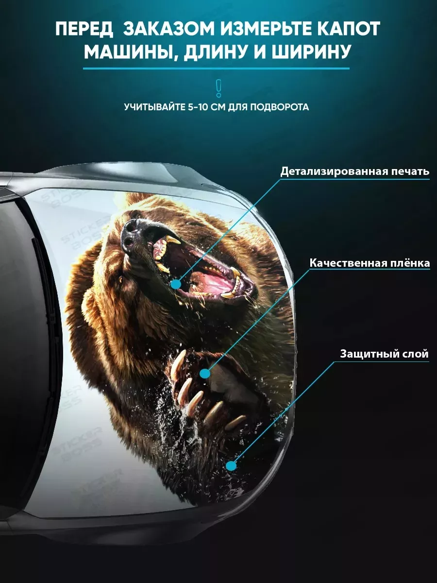 Предлагаем вашему вниманию большую декоративную наклейку на капот вашего авто. Размер стикера универсальный - 155х119 см, подойдет на капоты большинства популярных авто, будь то седан, хэтчбек или универсал. При необходимости можно подрезать лист под нужный размер. При изготовлении этих автонаклеек мы используем высококачественную самоклеящуюся виниловую пленку ПВХ, которая обеспечивает надежное приклеивание к поверхности, устойчива к любому виду моек и агрессивным погодным условиям, не боится пыли и влаги, не выгорает на солнце благодаря дополнительному верхнему слою ламинации. При желании, легко снимается, не оставляя следов. В наличии множество различных вариантов на любой вкус – в коллекции есть принты с надписями, героями известных кинофильмов, динамичные изображения львов, тигров, волков, медведей, леопардов, собак, лошадей, и прочих животных, принты в стиле аниме, флаги России, флаги известных футбольных клубов, горы, города, живописные пейзажи и многое другое. Наклейка позволяет украсить автомобиль и добавить ему стиля и индивидуальности, декорировать под ваши индивидуальные взгляды на дизайн машины. Товар упаковывается в специальную защитную тубу, что позволяет обеспечить его сохранность во время доставки и порадовать наших покупателей яркими красками и высоким качеством наших стикеров. Они так же станут отличным подарком вашим близким на новый год, день рождения, женщинам на 8 марта и мужчинам на 23 февраля. Сделайте повседневную езду на машине ярче, вместе с продукцией бренда Stickerboss!