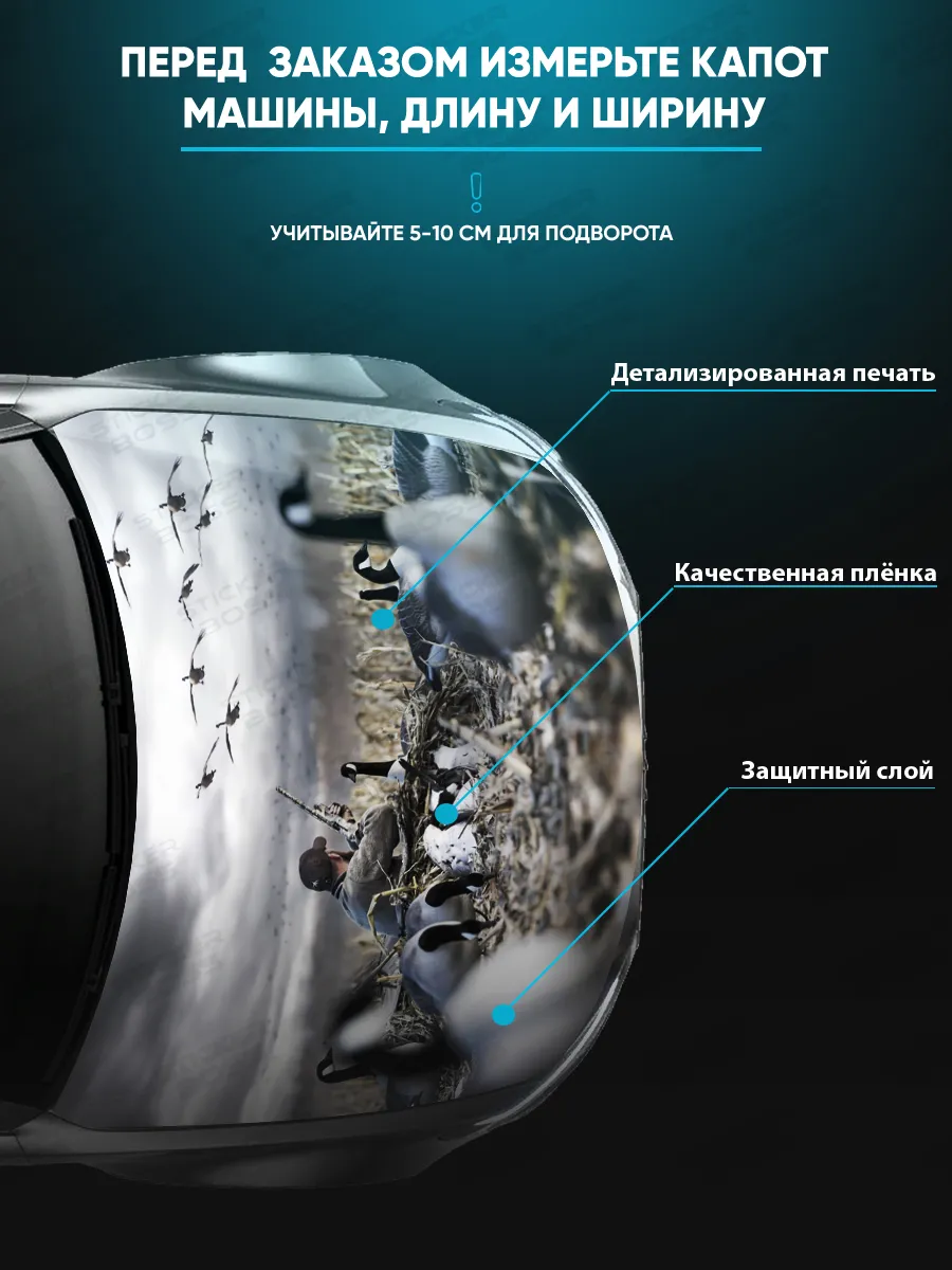 Предлагаем вашему вниманию большую декоративную наклейку на капот вашего авто. Размер стикера универсальный - 155х119 см, подойдет на капоты большинства популярных авто, будь то седан, хэтчбек или универсал. При необходимости можно подрезать лист под нужный размер. При изготовлении этих автонаклеек мы используем высококачественную самоклеящуюся виниловую пленку ПВХ, которая обеспечивает надежное приклеивание к поверхности, устойчива к любому виду моек и агрессивным погодным условиям, не боится пыли и влаги, не выгорает на солнце благодаря дополнительному верхнему слою ламинации. При желании, легко снимается, не оставляя следов. В наличии множество различных вариантов на любой вкус – в коллекции есть принты с надписями, героями известных кинофильмов, динамичные изображения львов, тигров, волков, медведей, леопардов, собак, лошадей, и прочих животных, принты в стиле аниме, флаги России, флаги известных футбольных клубов, горы, города, живописные пейзажи и многое другое. Наклейка позволяет украсить автомобиль и добавить ему стиля и индивидуальности, декорировать под ваши индивидуальные взгляды на дизайн машины. Товар упаковывается в специальную защитную тубу, что позволяет обеспечить его сохранность во время доставки и порадовать наших покупателей яркими красками и высоким качеством наших стикеров. Они так же станут отличным подарком вашим близким на новый год, день рождения, женщинам на 8 марта и мужчинам на 23 февраля. Сделайте повседневную езду на машине ярче, вместе с продукцией бренда Stickerboss!