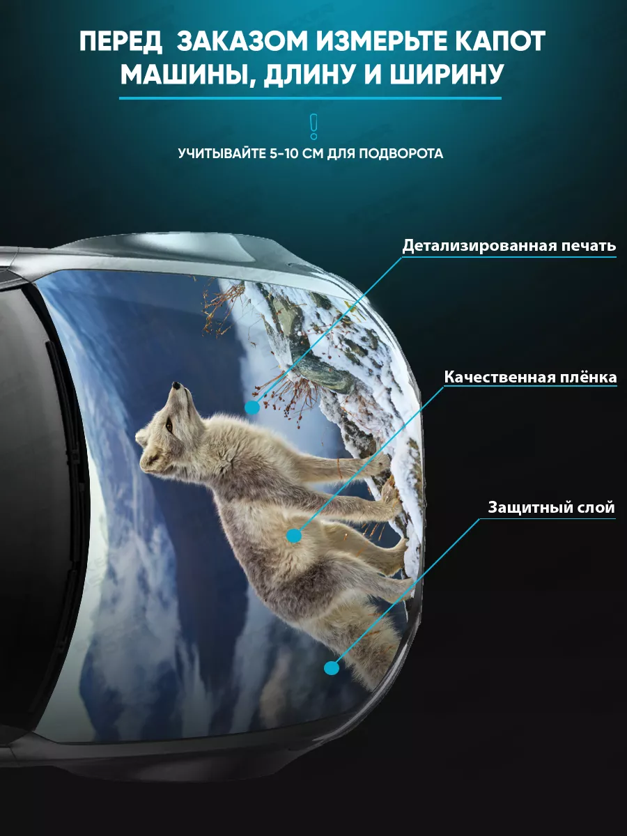 Предлагаем вашему вниманию большую декоративную наклейку на капот вашего авто. Размер стикера универсальный - 155х119 см, подойдет на капоты большинства популярных авто, будь то седан, хэтчбек или универсал. При необходимости можно подрезать лист под нужный размер. При изготовлении этих автонаклеек мы используем высококачественную самоклеящуюся виниловую пленку ПВХ, которая обеспечивает надежное приклеивание к поверхности, устойчива к любому виду моек и агрессивным погодным условиям, не боится пыли и влаги, не выгорает на солнце благодаря дополнительному верхнему слою ламинации. При желании, легко снимается, не оставляя следов. В наличии множество различных вариантов на любой вкус – в коллекции есть принты с надписями, героями известных кинофильмов, динамичные изображения львов, тигров, волков, медведей, леопардов, собак, лошадей, и прочих животных, принты в стиле аниме, флаги России, флаги известных футбольных клубов, горы, города, живописные пейзажи и многое другое. Наклейка позволяет украсить автомобиль и добавить ему стиля и индивидуальности, декорировать под ваши индивидуальные взгляды на дизайн машины. Товар упаковывается в специальную защитную тубу, что позволяет обеспечить его сохранность во время доставки и порадовать наших покупателей яркими красками и высоким качеством наших стикеров. Они так же станут отличным подарком вашим близким на новый год, день рождения, женщинам на 8 марта и мужчинам на 23 февраля. Сделайте повседневную езду на машине ярче, вместе с продукцией бренда Stickerboss!