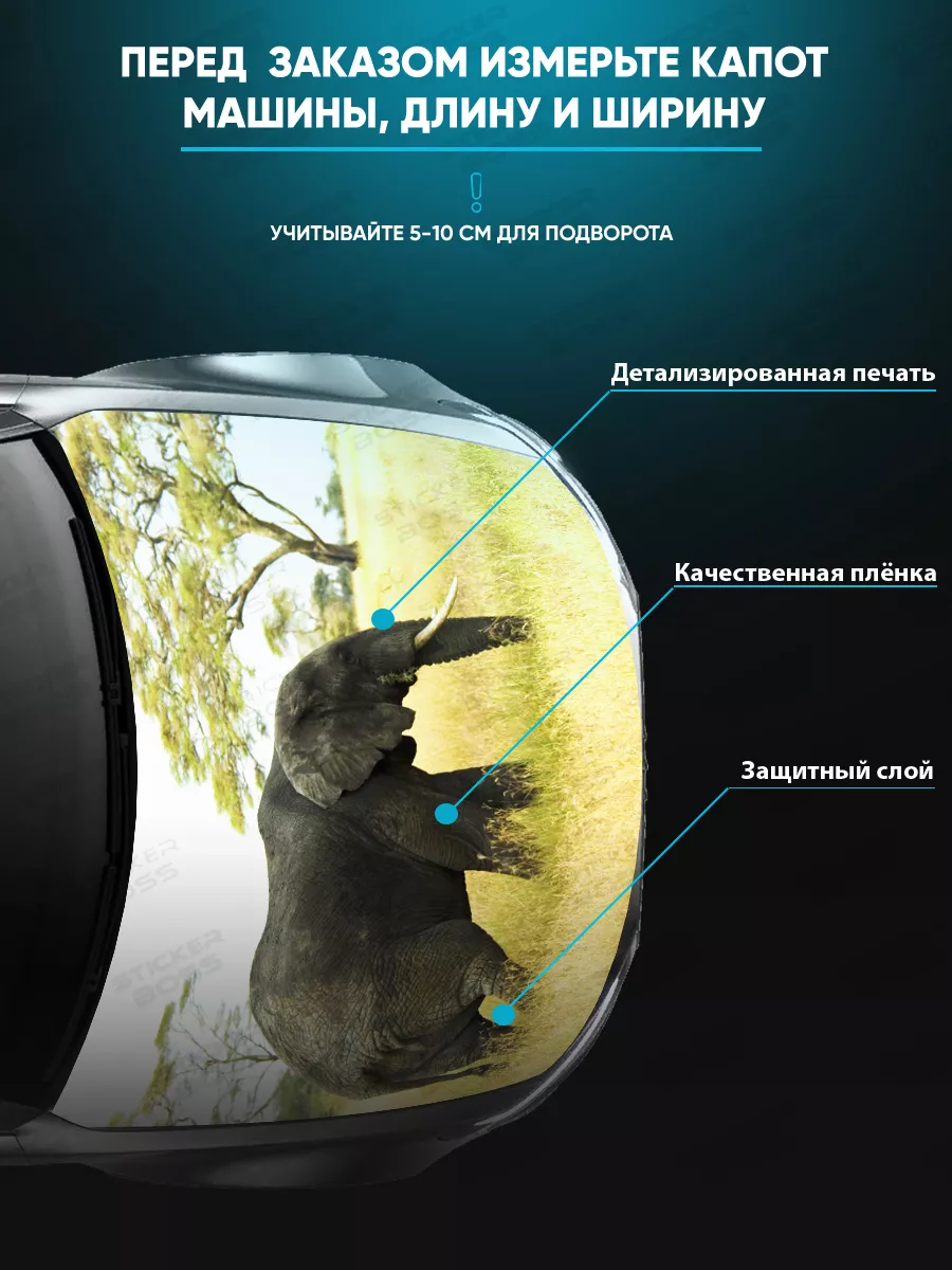 Предлагаем вашему вниманию большую декоративную наклейку на капот вашего авто. Размер стикера универсальный - 155х119 см, подойдет на капоты большинства популярных авто, будь то седан, хэтчбек или универсал. При необходимости можно подрезать лист под нужный размер. При изготовлении этих автонаклеек мы используем высококачественную самоклеящуюся виниловую пленку ПВХ, которая обеспечивает надежное приклеивание к поверхности, устойчива к любому виду моек и агрессивным погодным условиям, не боится пыли и влаги, не выгорает на солнце благодаря дополнительному верхнему слою ламинации. При желании, легко снимается, не оставляя следов. В наличии множество различных вариантов на любой вкус – в коллекции есть принты с надписями, героями известных кинофильмов, динамичные изображения львов, тигров, волков, медведей, леопардов, собак, лошадей, и прочих животных, принты в стиле аниме, флаги России, флаги известных футбольных клубов, горы, города, живописные пейзажи и многое другое. Наклейка позволяет украсить автомобиль и добавить ему стиля и индивидуальности, декорировать под ваши индивидуальные взгляды на дизайн машины. Товар упаковывается в специальную защитную тубу, что позволяет обеспечить его сохранность во время доставки и порадовать наших покупателей яркими красками и высоким качеством наших стикеров. Они так же станут отличным подарком вашим близким на новый год, день рождения, женщинам на 8 марта и мужчинам на 23 февраля. Сделайте повседневную езду на машине ярче, вместе с продукцией бренда Stickerboss!