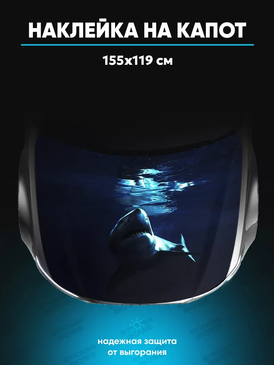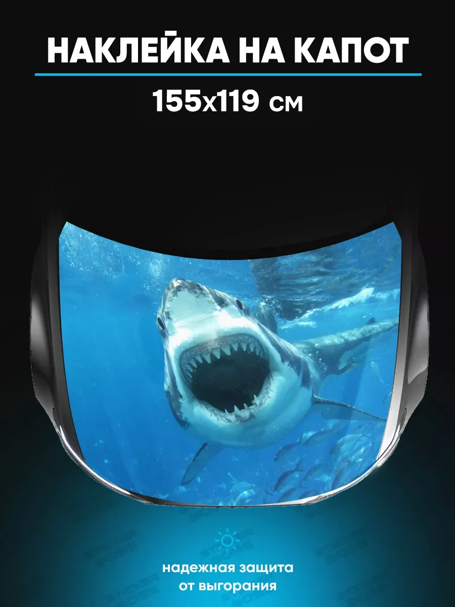 Представляем большую наклейку на капот авто с акулой, которая станет идеальным акцентом для вашего автомобиля