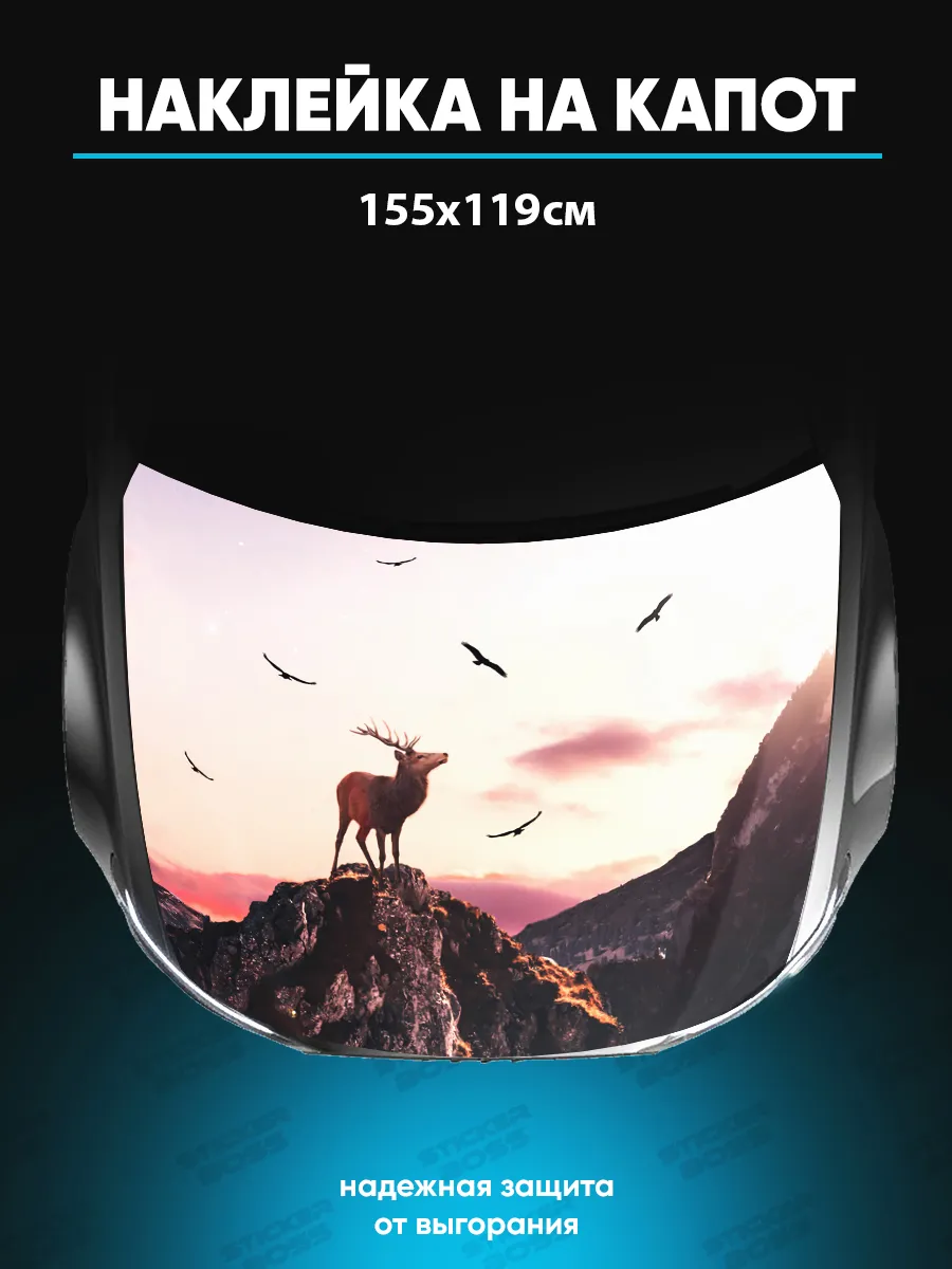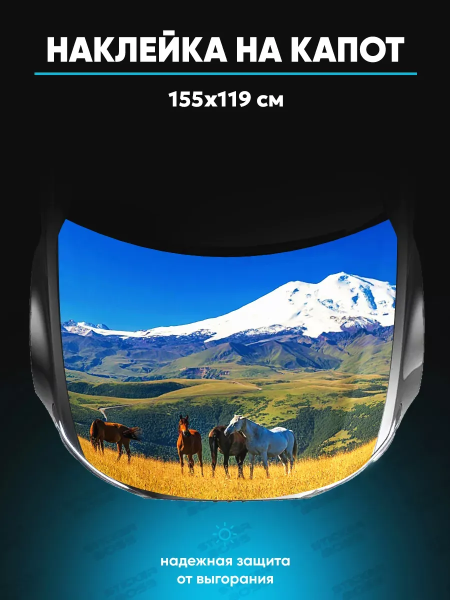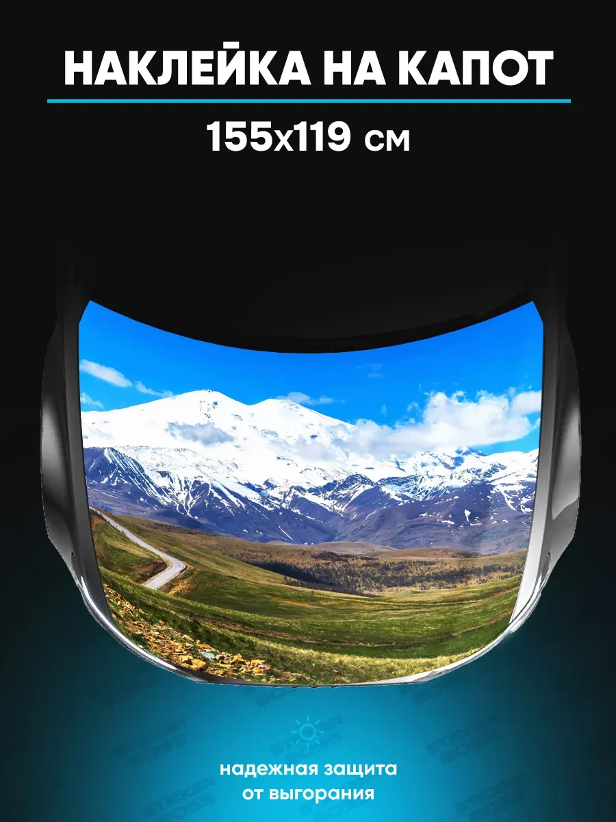 Представляем большую наклейку на капот с изображением величественных горных вершин, которая станет идеальным акцентом для вашего автомобиля