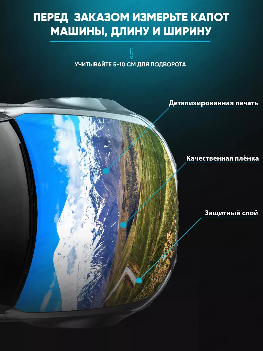 Представляем большую наклейку на капот с изображением величественных горных вершин, которая станет идеальным акцентом для вашего автомобиля. Яркий автодекор с природным мотивами придаст транспортному средству вдохновляющий вид и подчеркнет вашу индивидуальность. Размер стикера составляет 155х119 см, что делает его подходящим для капотов большинства популярных машин, будь то седан, хэтчбек или универсал. Эта автонаклейка с шикарными пейзажами изготовлена из высококачественной самоклеящейся виниловой пленки ПВХ, что гарантирует долговечность и стойкость к внешним воздействиям. Она также имеет верхний слой ламинации, который защищает изображение от выцветания и механических повреждений. Товар упаковывается в специальную защитную тубу, что обеспечивает его сохранность во время доставки. Стикеры с горными вершинами добавят вашему транспортному средству уникальности и стиля, отражая вашу любовь к природе, а также станут отличным подарком на Новый год, день рождения, 23 февраля и другие праздники. Сделайте повседневную езду на машине ярче и выразительнее вместе с продукцией бренда Stickerboss, особенно для путешественников на авто!